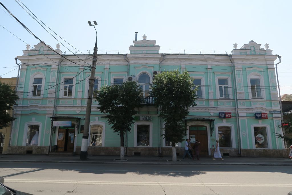 Объёмно-пространственная композиция объекта культурного наследия: - здание двухэтажное, с подвалом, П-образной формы в плане, с ризалитами, небольшими крыльями и с пристроями, развитыми вглубь,- конфигурация, габариты в плане и по высоте (включая высотные отметки крыши) здания.Строительные конструкции здания:- фундамент,- наружные и внутренние капитальные стены. Композиционное построение и декор фасадов:главный фасад:- внешний архитектурный облик здания решен в стиле эклектики с чертами неоклассицизма,- характер фасадной поверхности – стены выполнены из красного керамического кирпича, оштукатурены, окрашены; руст в уровне первого этажа,- количество, осевое расположение, конфигурация оконных проемов:в уровне первого этажа – проемы высокие и широкие прямоугольные окна-витрины с лучковыми перемычками, замковым камнем. Остальные проемы с тянутыми наличниками, прямым сандриком,в уровне второго этажа – проемы в ризалитах с лучковой перемычкой, профилированными наличниками и пилястрами с ширинками,- дверные проемы парадных входов раскрыты в ризалитах,- три фигурные парапетные стенки в ризалитах - с вазонами, лепным декором,- широкие и узкие пилястры с лепным декором,- подоконные ниши с лепным декором,- балкон с кованным ограждением, на кованных кронштейнах,- междуэтажный карнизный пояс профилированный с рядом сухариков,- фриз широкий, с лепным декором, рядом сухариков,- венчающий карнизный пояс профилированный с рядом сухариков, с раскреповкой. Дворовый фасад:- оконные проемы с полуциркульной перемычкой, профилированными наличниками полуциркульного завершения. Интерьеры объекта культурного наследия:- лестница с кованными ступенями, проступенями, проступями и ограждением, деревянные перила,- потолочные тяги и лепной декор,- камин,- конфигурация и заполнения дверных проемов.