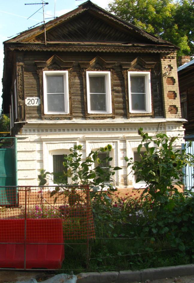 Первоначальный внешний архитектурный облик здания, включая:- объемно-планировочную композицию: двухэтажное, полукаменное прямоугольное в плане здание;- композиционное построение и декоративное оформление главного фасада: архитектурно-художественное решение главного фасада здания в традициях деревянного зодчества; количество, осевое расположение и конфигурация оконных и дверных проёмов по фасаду;декоративное оформление главного фасада, включая:отделка первого этажа под руст, обшивка тёсом в горизонтальном направлении второго этажа и направленным елочкой на фронтоне;обрамление оконных проемов: в уровне первого этажа - кирпичный наличник с карнизом в два кирпича; в уровне второго этажа - наличник с элементами пропильной резьбы, резным кронштейном, сандриком с треугольной бровкой, резным подзором волнообразного характера;резная подоконная доска;прямоугольные ниши в цоколе; угловая деревянная пилястра с рамочным декором в центре, кирпичная пилястра с квадратными нишами-ширинками со скруглёнными углами; междуэтажный карниз, ряд квадратных углублений на фризе, венчающий карниз с двумя рядами резного подзора;причелины крыши с резным подзором.