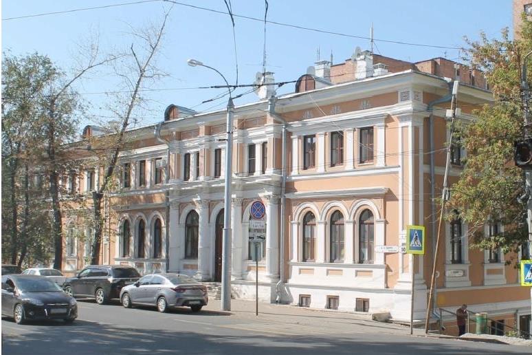 Объёмно-пространственная композиция объекта культурного наследия: - здание кирпичное, двухэтажное на цокольном этаже, с подвалом, прямоугольное в плане с пристроем в левой части,- вдоль улицы Алексея Толстого расположены ограда и ворота из металлических решеток, с кованными элементами, на столбах.Композиционное построение и декор фасадов: - архитектурное решение фасадов выполнено в стиле классицизм, с детализацией и дробностью фасада:главный фасад с улице Алексея Толстого имеет 14-осевую 4-частную фронтальную композицию: - пилястры, фланкирующие первоначальный объем здания; пилястры плоские, филенчатые; в поле пилястр под венчающим карнизом - барельефные изображения, - портик, выделенный четырьмя полуколоннами, с капителями сложного, оригинального рисунка. В уровне первого этажа частично каннелированные трехчетвертные колонны с капителями, в уровне второго – колонны прямоугольного сечения с филенками. Межэтажный фриз портика с лепным барельефом растительного орнамента. В промежутках между колоннами размещаются оконные проемы и парадный вход,- оконные проемы: в уровне первого этажа - удлиненная форма с полуциркульной перемычкой, с архивольтами, лопатками в простенках и филенчатыми ширинками под окнами; в уровне второго этажа - прямоугольная форма, с плоскими лопатками в простенках; оконные проемы первоначального объема объединены профилированными сандриками, с наличниками в виде пилястр и прямыми сандриками,- межоконные промежутки декорированы плоскими пилястрами, часть которых в сочетании с полуциркульными перемычками над оконными проемами первого этажа имитируют аркаду,- межэтажный сложно профилированный карниз, венчающий карниз с фризом, в поле которого - лепные элементы растительного орнамента. главный фасад с улице Пионерская имеет 5-осевую фронтальную композицию:- оконные проемы декорированы аналогично первоначальному объему (но не объединены под общим сандриком).дворовой фасад:- выраженный цокольный этаж вследствие понижения рельефа. В центральной части на высоком цоколе расположен портик, выдвинутый вперед. В уровне цокольного этажа портика - высокие полуциркульные оконные проемы с двойными клинчатыми перемычками. В уровне первого и второго этажей - четыре кирпичные оштукатуренные колонны, частично каннелированные с капителями. Литые чугунные ограждения растительного орнамента в межколонном пространстве. Потолок портика решен кессонами. Углы здания и стена за портиком дворового фасада декорированы филенчатыми пилястрами с капителями,- тянутые карнизные пояса,- фриз с лепными гирляндами и пальметтами,- первоначальные столярные заполнения оконных проемов с расстекловками и филенчатые дверные полотна парадного входа.дворовый фасад пристроя имеет 5-осевую фронтальную композицию:- оконные проемы первого этажа прямоугольные, с наличниками в виде пилястр и прямыми сандриками. В 1, 5-ой осях оконные проемы первого этажа с фронтончиками. Оконные проемы второго этажа удлиненной формы с полуциркульной перемычкой. Во 2-й оси в уровне второго этажа - дверной проем.Декоративно-художественная отделка интерьеров здания:- парадный зал - потолок расчленяется на два орнаментально обработанных поля: оркестровый балкон и основная часть зала. В основной части зала - мелкомасштабная лепка, в центре - две узорчаты