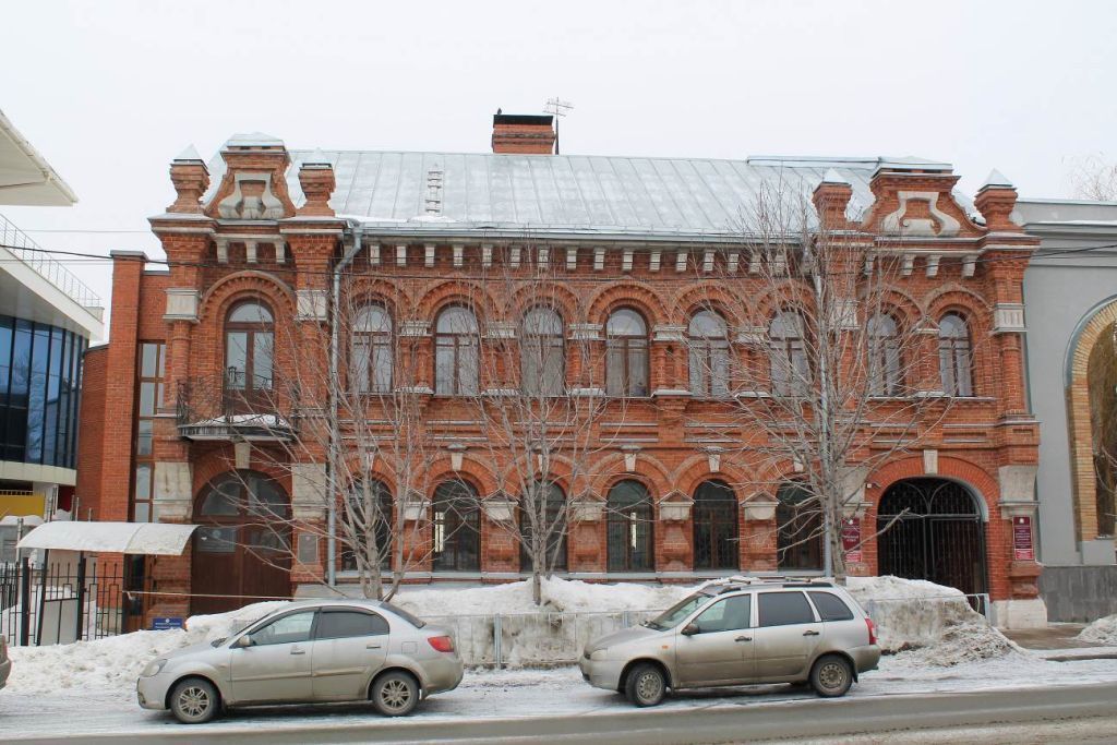 Объёмно-пространственная композиция объекта культурного наследия: - здание двухэтажное, каменное, с ризалитами, аркой,- конфигурация, габариты в плане и по высоте (включая высотные отметки крыши) здания.Строительные конструкции здания:- фундамент,- наружные стены.Композиционное построение и декор главного фасада:Главный фасад:- внешний архитектурный облик здания решен в русском стиле,- характер фасадной поверхности – стены выполнены из полнотелого глиняного кирпича на известковом растворе, не оштукатурены,- ризалиты – в уровне первого этажа с пилястрами, в уровне второго этажа с полуколоннами,- балкон с кованым ограждением,- количество, осевое расположение, конфигурация оконных проемов:в уровне первого этажа - проемы с полуциркульными перемычками, замковым камнем, наличниками, опирающимися на пилястры с энтазисом. В подоконном фризе – филенки,в уровне второго этажа – проемы с полуциркульными перемычками, кокошниками с сухариками, опирающимися на полуколонны. В подоконном фризе - сухарики, кронштейны-базы полуколонн и ниши – ширинки, - входной проем парадного входа с полуциркульной перемычкой, замковым камнем; двупольная деревянная дверь,- венчающий карнизный пояс с массивными кронштейнами,- аттиковые стенки сложной формы, с объемными фигурными элементами из белого камня,- арка с полуциркульной перемычкой, замковым камнем.