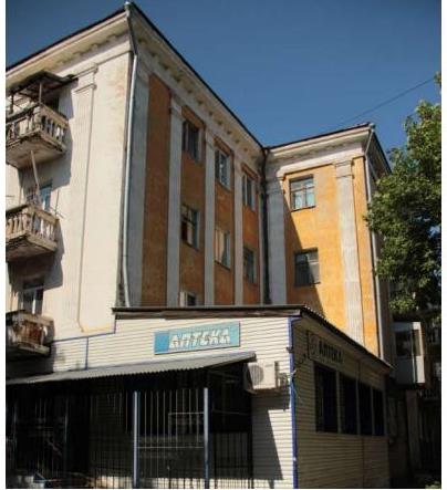 Градостроительные характеристики: - композиционная значимость - композиционная роль объекта, являющегося акцентом в застройке улицы Орджоникидзе,- секторы и направления видовых раскрытий, визуальные связи объекта - точки восприятия объекта с улицы Орджоникидзе. Участки вдоль улицы и дороги образуют зону видимости объекта и формирования видов,- объемно-планировочное решение - здание четырехэтажное, Г- образной формы в плане.Архитектурные и конструктивные характеристики: - объемно-пространственная композиция – первоначальные форма и габариты здания, два разно размерных прямоугольных объёма,- материально-конструктивная структура - стены выполнены из керамического глиняного кирпича на известковом растворе,- композиция и архитектурно-художественное оформление фасадов в стиле - сталинский классицизм,- плоскость стены в уровне первого этажа отделана рустом,- входы в подъезд - выделены ступенчатыми порталами прямоугольного очертания, витражные оконные проемы, - узкий междуэтажный карниз,- простеночные пилястры с канелюрами, стилизованными капителями простого прямоугольного сечения,- венчающий карниз с широким фризом, простого профиля, с модульонами,- балконы с балясинами.