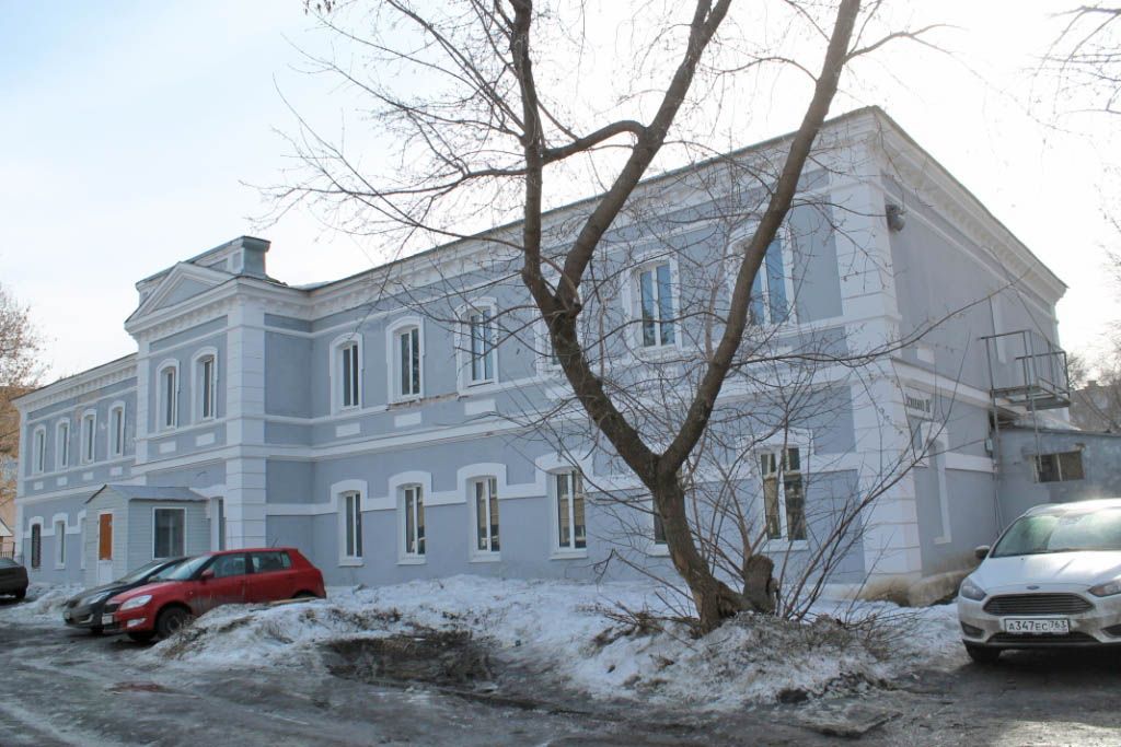 Объёмно-пространственная композиция объекта культурного наследия: - здание кирпичное, двухэтажное, прямоугольной формы в плане, с центральным ризалитом и симметрично расположенными относительно него протяженными крыльями,- конфигурация, габариты в плане и по высоте (включая высотные отметки крыши) здания.Композиционное построение и декор главного фасада:- внешний архитектурный облик здания решен в стиле позднего классицизма с чертами эклектики,- количество, осевое расположение и конфигурация оконных и дверных проемов по фасаду. Оконные проемы с лучковой перемычкой; в уровне первого этажа – оформлены П-образными полуналичниками, которые соединяются горизонтальным импостом, образуя сплошной аркатурный пояс, в уровне второго этажа - оформлены профилированными рамочными наличниками с «ушками»,- руст по углам ризалита и боковым крыльям фасада,- междуэтажный карнизный пояс, подоконный парапет второго этажа с нишами-ширинками, фриз и венчающий карниз на фигурных кронштейнах,- треугольный фронтон с прямой аттиковой стенкой, два парапетных столбика над ризалитом.