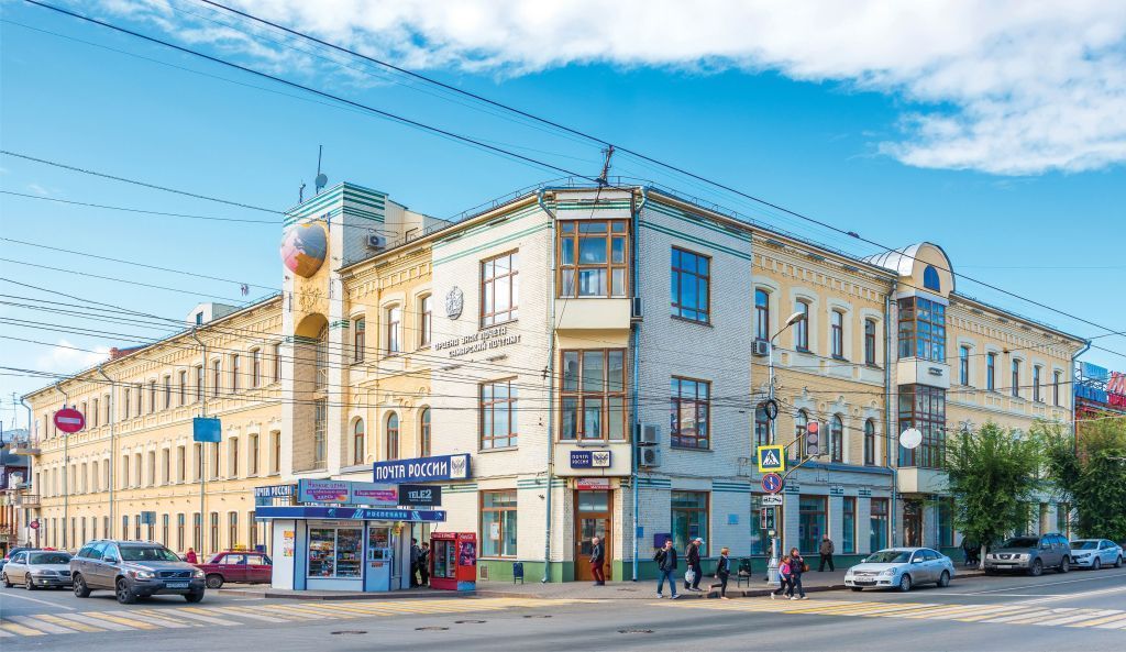 Объёмно-пространственная композиция объекта культурного наследия: - здание трехэтажное, с высоким подвальным этажом, Г-образной формы в плане, с пристроями со стороны двора, эркером,- конфигурация, габариты в плане и по высоте (включая высотные отметки крыши) здания.Строительные конструкции здания:- фундамент,- наружные и внутренние капитальные стены,- металлическая лестница на дворовом фасаде,- металлическая лестница с первого на второй этаж со стороны улицы Ленинградская,- лестницы с металлическим ограждением,- колонны в зале первого этажа. Композиционное построение и декор главных фасадов:- внешний архитектурный облик здания решен в стиле эклектики и позднего модерна (1910-е гг.) вследствие реконструкций,- характер фасадной поверхности – стены выполнены из красного керамического кирпича, не оштукатурены; угловая часть здания и объем над главным входом по улице Ленинградская облицованы белого цвета глазурованной плиткой-«кабанчиком» с декоративными поясами изумрудно-зеленого «кабанчика»,- количество, осевое расположение, конфигурация оконных проемов, рисунок оконного заполнения:угловая часть – широкие проемы-витрины с мелкой расстекловкой, на скошенном углу – с балконами в уровне первого этажа – часть проемов по улице Ленинградская с лучковой перемычкой, наличниками; по улице Куйбышева - проемы-витрины с мелкой расстекловкой,в уровне второго этажа – проемы с лучковой перемычкой, сандриком с полукруглой бровкой, часть с арочной перемычкой, арочными наличниками, в уровне третьего этажа – проемы с лучковой перемычкой, наличниками с ушками, подоконными нишами-ширинками,- балконы с ограждением,- междуэтажный карнизный пояс,- фриз с узкими лопатками, - венчающий карнизный пояс развитый из нескольких рядов кирпича, с поясом сухариков,- высокий объем на фасаде по улице Ленинградская над дверным проемом парадного входа в залы почтамта решен в стиле рационального модерна: пилоны облицованы белым глазурованным кабанчиком с горизонтальными узкими вставками поясов изумрудного цвета, высокий и широкий витраж с полуциркульным завершением, мелкая расстекловка витража с узкими высокими членениями, чередующимися с квадратными членениями; в верхней части витража в рисунке переплетов прочитывается круг, поддерживающий декор этой части,верхняя часть глобуса (демонтировали в 1950-х гг.) в настоящее время большого круглого окна) окаймлена темно-синей майоликой с перламутровым отливом,- барельеф, изображающий группу тружеников, - эркер с завершением полукруглой формы в центре фасада по улице Куйбышева. Интерьеры объекта культурного наследия:- потолок – тянутый декор с поясками из иоников и листьев аканта,- первоначальные заполнения дверных проемов,- декоративное оформление колонн.