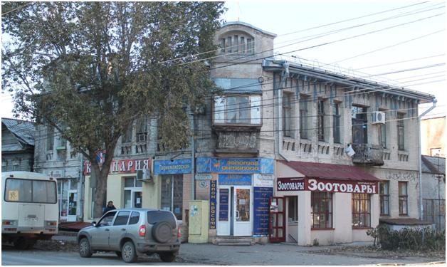 Объёмно-пространственная композиция объекта культурного наследия: - здание двухэтажное, с высоким подвальным этажом, Г-образное в плане, со скошенным углом; - конфигурация, габариты в плане и по высоте (включая высотные отметки крыши) здания.Строительные конструкции здания:- фундамент;- наружные и внутренние капитальные стены.Композиционное построение и декор главных фасадов:- внешний архитектурный облик здания решен в стиле рациональный модерн;- характер фасадной поверхности – стены выполнены из силикатного кирпича, не оштукатурены; главный фасад по улице Льва Толстого- количество, осевое расположение, конфигурация оконных проемов, рисунок заполнений:в уровне первого этажа - проемы прямоугольные, окна-витрины;в уровне второго этажа - проемы прямоугольные с клинчатыми перемычками, подоконный фриз с вертикальными узкими нишами;- межэтажный карнизный пояс;- венчающий карнизный пояс с дощатой обшивкой на резных деревянных кронштейнах, чередующихся по высоте;- аттиковая стенка – с лучковым завершением, вертикальными нишами;главный фасад по улице Чапаевская- количество, осевое расположение, конфигурация оконных проемов, рисунок заполнений: в уровне первого этажа - проемы прямоугольные, окна-витрины;в уровне второго этажа – проемы прямоугольные, с клинчатыми перемычками; в седьмой оси рисунок заполнения - двухчастный переплет с нижними узкими форточками и верхней фрамугой с мелкими членениями из 12 квадратов;- парадный вход - два дверных полотна (внешнее и внутреннее): трехчастное полотно с двумя боковыми фрамугами с квадратными стеклянными вставками и верхняя стеклянная фрамуга;- широкий балконный проем, вынос балкона со скошенными углами; рисунок ограждения балкона с растительный мотивом (подсолнухи);- межэтажный карнизный пояс;- венчающий карнизный пояс с дощатой обшивкой на резных деревянных кронштейнах, чередующихся по высоте;скошенный угол: - выносной балкон с лучковой перемычкой и кованым ограждением, - аттиковая стенка с лучковым завершением, вертикальными нишами.Интерьеры объекта культурного наследия:- кованые ограждения в виде вертикальных перекладин, украшенных в верхней части листком на изогнутом стебле; фрагменты ограждения в виде листьев утрачены (сохранился единственный элемент–листок), - напольное покрытие в виде шахматного рисунка из бежевой и терракотовой квадратной плитки.