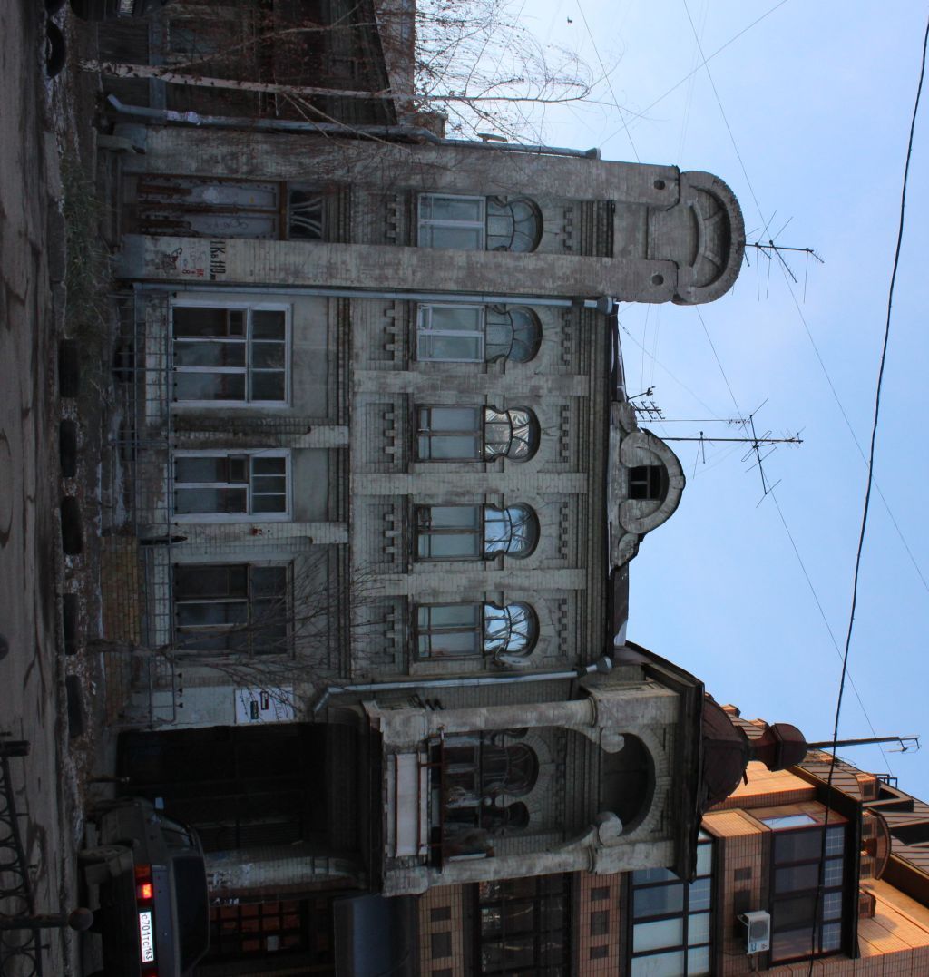 Объёмно-пространственная композиция объекта культурного наследия: - здание двухэтажное каменное, прямоугольное в плане, с аркой проезда во двор, вытянутое в сторону двора, - конфигурация, габариты в плане и по высоте (включая высотные отметки крыши) здания.Строительные конструкции здания:- фундамент,- наружные и внутренние капитальные стены. Композиционное построение и декор главного фасада:- внешний архитектурный облик здания решен в стиле модерн,- характер фасадной поверхности – стены выполнены из красного керамического кирпича, окрашены,- количество, осевое расположение, конфигурация оконных проемов:в уровне первого этажа - проемы прямоугольные. Центральное окно выделено лопатками с ушками,в уровне второго этажа - проемы фигурного пластичного очертания, с коробовым завершением, опирающимся на фигурные элементы. Наличники по форме проема, с замковым камнем. Над и под проемами - ниши с зубчиками. - лопатки со скошенными углами в межоконных простенках,- дверной проем - двупольная дверь с фигурным декором, фрамуга с пластичным переплетом,- заполнение оконных проемов - деревянные оконные пластичные переплеты,- балкон – кронштейны, полуколонны, шатровая крыша со шпилем, оконные проемы и выход на балкон коробового завершения, с единым наличником, висячими каплевидными элементами, замковыми камнями,- междуэтажный и венчающий карнизные пояса многоярусные, - парапетные столбики и парапетные стенки фигурного очертания,- арка коробовая, опирается на колонны.