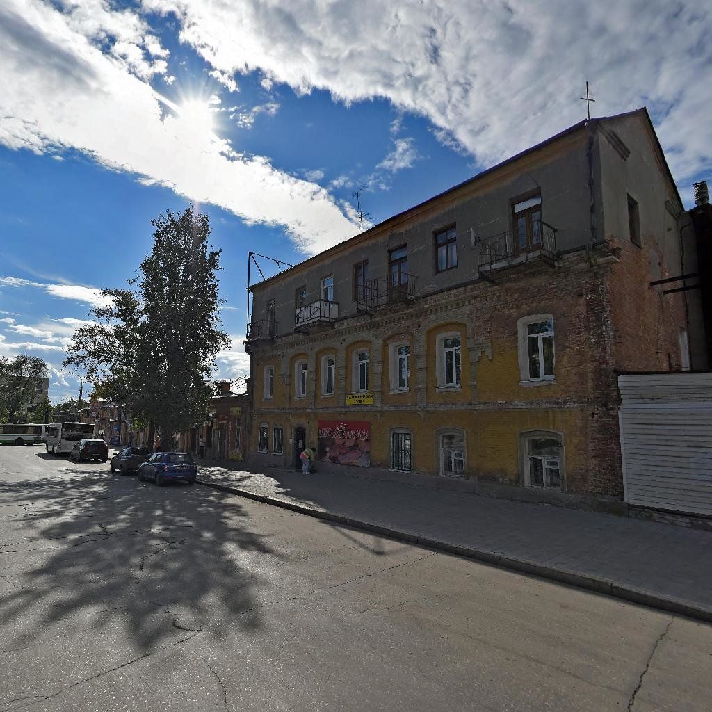 Внешний архитектурный облик здания, композиционное построение и декор фасада по ул. Степана Разина: оконные проемы первого и второго этажей с лучковым завершением, наличники окон, простеночные лопатки с дентикулами, угловыми лопатки с сухариками, межэтажный и венчающий карнизные пояса.