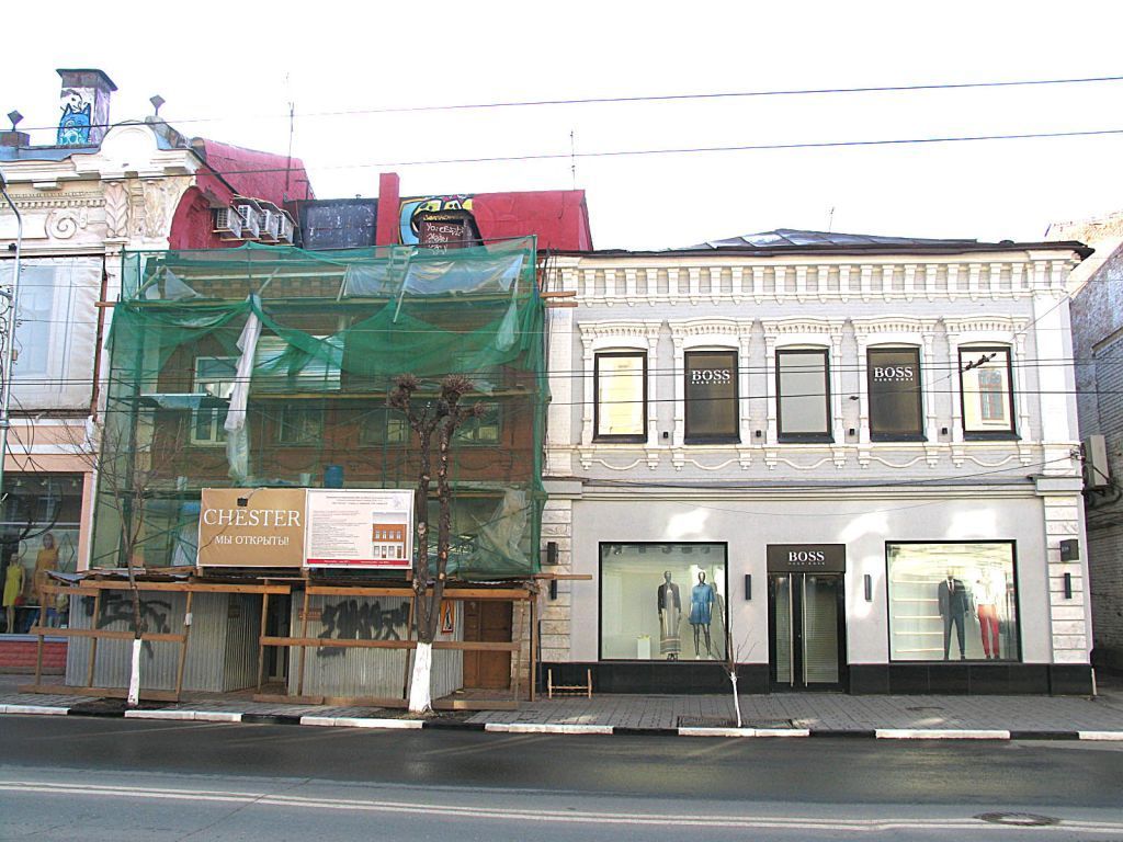 Объёмно-пространственная композиция объекта культурного наследия: - два примыкающих торцами друг к другу двухэтажных кирпичных прямоугольных в плане здания (литеры А, Б), с подвальным этажом (литера Б), с присторями со стороны двора,- конфигурация, габариты в плане и по высоте (включая высотные отметки крыши) здания.Строительные конструкции здания:- фундамент,- наружные и внутренние капитальные стены. Композиционное построение и декор фасадов:- внешний архитектурный облик здания решен в стиле эклектики,- характер фасадной поверхности – стены выполнены из красного керамического кирпича, оштукатурены, - количество, осевое расположение, конфигурация оконных проемов:в уровне первого этажа - окна-витрины, в уровне второго этажа - проемы с лучковой перемычкой, наличниками с лучковым изгибом сандрика, тонкими пилястрами и мелкими деталями из фигурного кирпича,- пилястры – рустованные в уровне первого этажа, гладкие – в уровне второго этажа,- венчающий карнизный пояс с язычками.