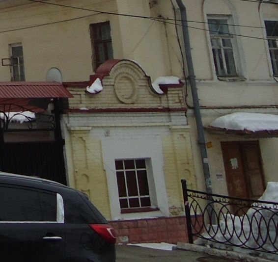 Внешний архитектурный облик, композиционное построение и декор главного фасада - симметричная композиция главного фасада с центральным оконным проёмом, первоначальные габариты оконного проёма, декоративное убранство фасада, выполненное в кирпичной кладке из лекального кирпича; аттиковая стенка, с циркульной нишей, обрамлённой полуциркульным наличником, пилястры, парапетные столбики с нишками, карнизные пояса.