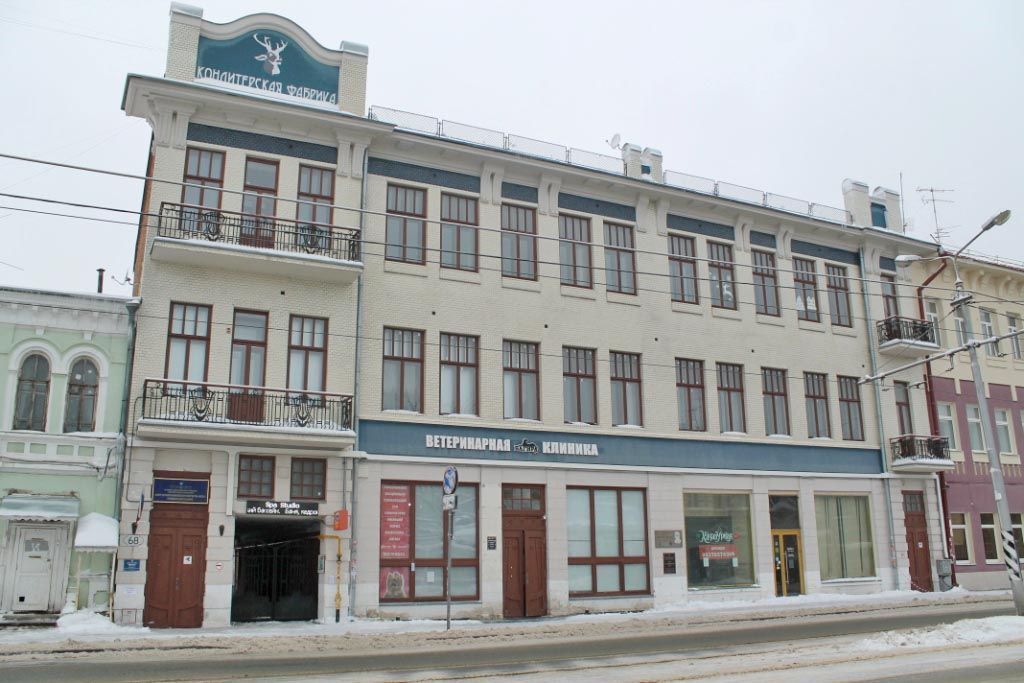 Объёмно-пространственная композиция объекта культурного наследия: - здание трехэтажное, кирпичное, Г-образное в плане, с ризалитами, аркой проезда,- конфигурация, габариты в плане и по высоте (включая высотные отметки крыши) здания.Строительные конструкции здания:- фундамент,- колонны в подвальных помещениях,- наружные и внутренние капитальные стены. Композиционное построение и декор главного фасада:- внешний архитектурный облик здания решен в стиле модерн,- характер фасадной поверхности – стены выполнены из красного керамического кирпича: в уровне первого этажа оштукатурены, в уровне второго и третьего этажей облицованы керамической плиткой «кабанчик» светло-серого цвета,- количество, осевое расположение, конфигурация оконных проемов, расстекловка:оконные проемы:в уровне первого этажа – большие окна-витрины, в уровне второго и третьего этажей – проемы прямоугольные,- руст в обрамлении дверных проемов,- балконы с кованым металлическим ограждением,- фриз с поясом темно-синей майолики,- венчающий карниз с парными кронштейнами,- аттиковые стенки и парапетный столбик - фигурные, частично облицованы керамической плиткой «кабанчик»,- кованое ограждение кровли.Интерьеры объекта культурного наследия:- три лестницы:ступени до уровня второго этажа из искусственного камня, выше – мозаичный бетон, межэтажные площадки из метлахской плитки, ограждение,- потолки:потолочные падуги в помещениях второго и третьего этажей,фигуры купидонов, потолочные плафоны, розетки растительного орнамента в помещении № 8,- камин, труба печного отопления в помещении № 9.