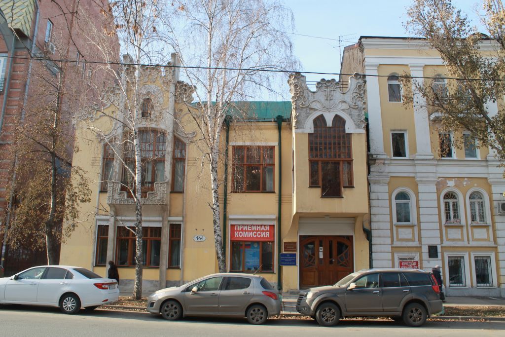 Объёмно-пространственная композиция объекта культурного наследия: - здание двухэтажное с подвальным этажом, кирпичное, вытянутое, Г-образное в плане, с эркером, круглым ризалитом со стороны двора и крылом, развитым вглубь участка; в связи с понижением рельефа – в дворовой части трехэтажное,- конфигурация, габариты в плане и по высоте (включая высотные отметки крыши) здания.Строительные конструкции здания:- фундамент,- наружные и внутренние капитальные стены.Композиционное построение и декор главного фасада:- архитектурное решение здания выполнено в стиле модерн,- характер фасадной поверхности – стены выполнены из красного керамического кирпича, оштукатурены, окрашены, - количество, осевое расположение, конфигурация и заполнения оконных проемов: в уровне первого и второго этажей в центре фасада - проемы большие прямоугольные, с трехчастным заполнением и верхними фрамугами с мелкой расстекловкой, в эркере - проем высокий с мелкой расстекловкой, проемы (в торцах) округлые, бионических форм,в ризалите – проем широкий, с двумя узкими пилонами,аттиковое окно окружено цветками кувшинок. Группы кувшинок, наплывающих на «мостки» пилонов с круглыми отверстиями, создают силуэт аттиковой стенки ризалита, увенчанного короной с расходящимися лучами,- парадный вход - рисунок дверного полотна со стеклянными вставками,- балкон с ограждением в виде изогнутых линий растительного лепного рисунка,- эркер над дверным проемом парадного входа с высокой фигурной аттиковой стенкой, на кронштейнах.
