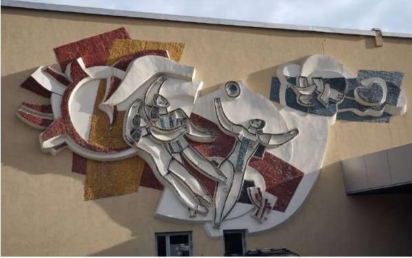 Произведение монументального искусства - мозаичное панно московских художников Александра Дронова и Александра Ухлина «Волейболистки», расположенное на фасаде здания Дворца спорта легкой атлетики