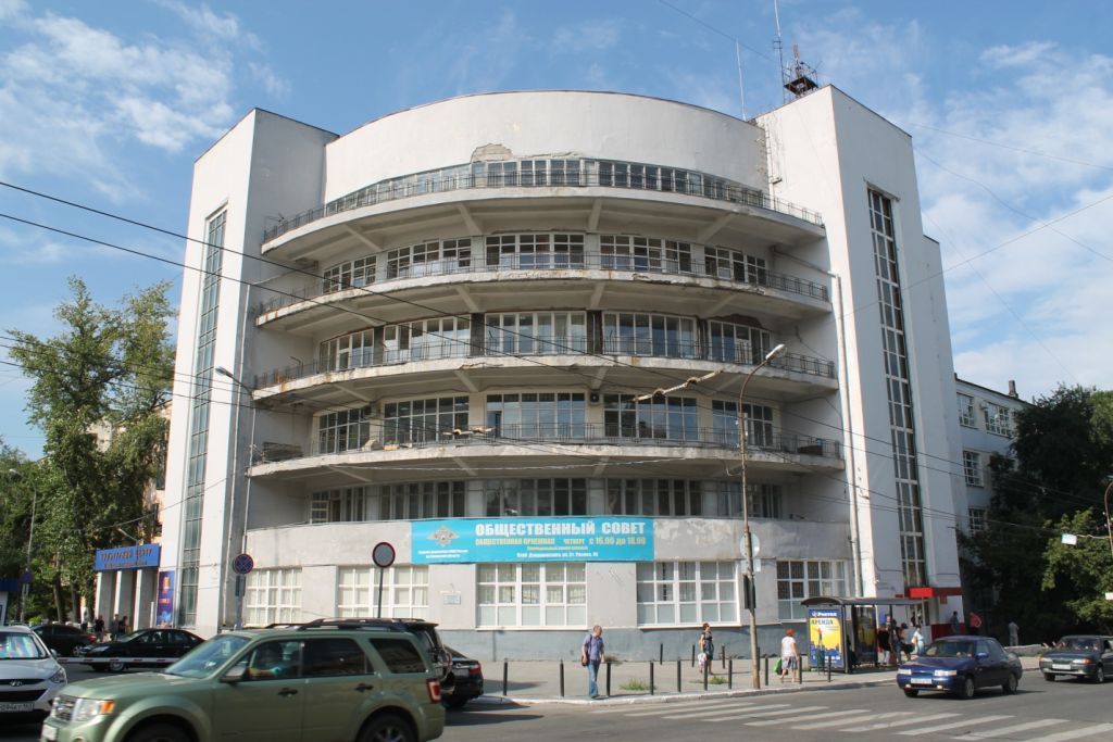 Объёмно-пространственная композиция объекта культурного наследия: - здание шестиэтажное. Угловая часть здания закругленная с единым остеклением окон, с прогулочными террасами по всем этажам, кроме первого, заключена между двумя объемами лестничных блоков с вертикальным единым остеклением, - конфигурация, габариты в плане и по высоте (включая высотные отметки крыши) здания.Строительные конструкции здания:- бутовые ленточные фундаменты,- наружные и внутренние капитальные стены и колонны,- монолитная ребристая конструкция перекрытия – вестибюль, фойе 1, 2 этажей, гардероб цокольного этажа,- перекрытия сводов Монье в подвале.Композиционное построение и декор главного фасада:- внешний архитектурный облик здания решен в стиле конструктивизм,- количество, осевое расположение и конфигурация оконных и дверных проемов по фасадам. Прямоугольные оконные и дверные проемы объединены в вертикальные и горизонтальные блоки.Декоративно-художественная отделка интерьеров:- зрительный зал:потолок - лепной потолочный карниз по периметру, в центре – декоративная розетка,стены – пилястры с капителями и советской символикой, балкон – лепные гирлянды, круглые розетки в квадратных нишах. - фойе 1 этажа, гардероб цокольного этажа:потолок кессонированный, с лепными элементами,- парадна лестница - облицовка мрамором.