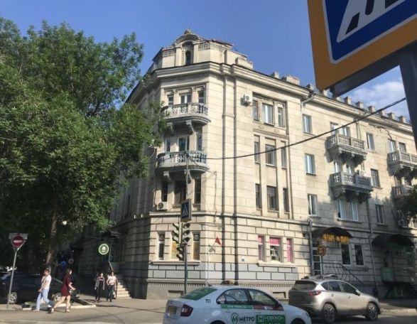 1.Местоположение объекта в планировочной структуре квартала. Квартал, ограниченный улицами Вольской, Большой Казачьей,.ул. Горького, ул. ЯблочковаОтдельно стоящее здание, угловое, Г-образное в плане, фасады, расположенные по красным линиям застройки улиц Вольской и Большой Казачьей идентичны и равнозначны; здание имеет собственную дворовую территорию отделенную от внутренней части квартала ограждением..2.Архитектурныйобъем здания. Архитектурный объем определяется в габаритах наружных стен здания и отметками коньков кровли датируемых периодом постройки1949- 1953 гг.Здание Г-образное в плане, имеет четыре надземных этажа, расположение угловое. Кровля двускатная.3.Стилистика, материал стен, характер отделки и цветовое решение уличных фасадов. Уличные фасады расположены по красным линиям застройки ул. Большой Казачьей и ул. ВольскойСтилистическое решение – неоклассицизм (сталинский ампир). Наружные стены кирпичные, характер отделки – штукатурное покрытие, укрупненный руст с имитацией кирпичной кладки. Цветовое решение – монохромное, оттенок светло-серый, с выделением более темным цветом архитектурных элементов фасадов, определенных в результате инженерно- технологических исследований.4.Архитектурные элементыуличных фасадов.--4.1.Композиционные элементы уличных фасадов:количество и расположение световых осей;ширина и верхняя отметка проемов первого этажа; пропорции и размеры проемов верхних этажей; вертикальные игоризонтальные членения. Уличные фасады расположены по красным линиям застройки ул. Большой Казачьей и ул. ВольскойЦентральные части фасадов в семь световых осей, боковые ризалиты фасадов и угловой фасад – в три световые оси, образуемые тройными оконными проемами. К вертикальным членениям относятся ризалиты обоих фасадов, к горизонтальным – линия цоколя, междуэтажный и венчающий карнизы.4.2.Балконы углового фасада. Уличный фасад, угловой фасад, 3 и 4 этажи.Бетонные балконы скругленной формы в плане, опирающиеся на валютообразные кронштейны, ограждения в виде массивных балюстрад, лепные и профильные элементы.4.3.Центральный аттик. Уличный фасад, угловой фасад, кровельная часть.Ступенчатый аттик с арочным проемом по центральной оси с лепным архивольтом и советской символикой.4.4.Балконы фасадов по ул. Большой Казачьей и ул. Вольской. Уличные фасады расположены по красным линиям застройки ул. Большой Казачьей и ул. Вольской, 3 и 4 этажи.Бетонные балконы прямоугольной формы в плане, опирающиеся на валютообразные кронштейны, массивные балюстрады ограждений, лепные и профильные элементы.4.5Венчающий карниз, парапетные столбики. Уличные фасады расположены по красным линиям застройки ул. Большой Казачьей и ул. Вольской, угловая часть здания.Венчающий карниз имеет большой вынос, простой выразительный профиль, декорирован рядом ионик и дентикул.Парапетные столбики, выходящие на кровлю здания, расположены вдоль линии фасадов по ул. Волькой и ул. Большой Казачьей, прямоугольные в плане с небольшими карнизами.