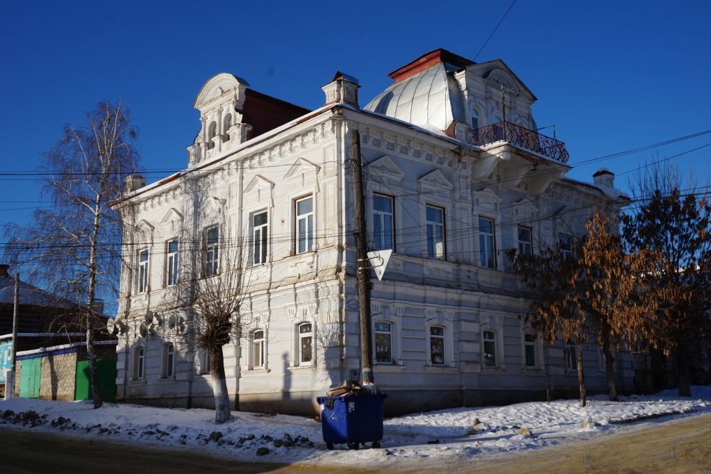 1.Местоположение Объекта в структуре города: на пересечении ул. Комсомольская и ул. Чернышевского г. Вольск.- домовладение квадратной формы в плане, состоящее из главного дома, торговой лавки и хозяйственных построек;2.Габариты и объемно-планировочная композиция главного дома: - этажность (двухэтажное с аттиковым этажом);- форма в плане (приближенная к квадрату);- форма крыши (комбинированная);2.1 Юго-восточный фасад (по ул. Чернышевского) на 5 световых осей с центрально-симметричной композицией2.2 Северо-восточный фасад (по ул.Комсомольской) на 6 световых осей с центрально-симметричной композицией.2.3 Северо-западный фасад (дворовый) на 5 световых осей.2.4 Юго-западный фасад (дворовый) на 6 световых осей.3. Материал стен – кирпичная кладка (глиняный кирпич на известковом растворе), гипсовая штукатурка.4. Композиционное и архитектурно-художественное оформление уличных фасадов:- стилевое решение (классицизм).- линейный руст в уровне первого этажа;- основные композиционные оси, подчеркнутые муфтированными пилястрами в уровне первого этажа и филенчатыми лопатками, декорированными лепным растительным орнаментом, в уровне второго этажа; - местоположение и пропорции межэтажного карниза;Местоположение и пропорции:- угловых филенчатых парапетных тумб с розеткой;- фриза, украшенного кронштейнами, кессонами и сухариками.4.1 Со стороны юго-восточного фасада местоположение и габариты: - двухоконного аттика; - полукруглого фронтона с растительным орнаментом по центру;- полуколонн на пьедесталах (увенчанных капителями ионического ордера);- обрамление окон с полуциркульным завершением и замковым камнем.4.2 Со стороны северо-западного фасада местоположение и габариты: - двухоконного аттика; - полукруглого фронтона с треугольным орнаментом по центру;- полуколонн на пьедесталах (увенчанных капителями тосканский ордера);- обрамление окон с полуциркульным завершением и замковым камнем.4.3 Со стороны северо-восточного фасада: местоположение, габариты и пропорции: - зеркального свода с треугольным фронтоном и полукруглым аттиком в центре; - трех проемов с полуциркульным завершением;- стилизованных полуколонн на пьедисталах балкона (каринфского ордера); - ограждения с кованным ажурным заполнением;- три массивных кронштейна несущие балкон.4.4 Со стороны юго-западного фасада: - Форма, размеры и пропорции: - тройного окна;- полуарка с деревянным обрамлением, служившая навесом над ранее утраченным балконом.- Форма, размеры и пропорции деревянного мезонина, завершенного треугольным фронтоном.- Обрамление окна:- деревянные резные балясины; - подоконная балюстрада.5. Габариты и местоположение световых осей:- три вида окон: с лучковым завершением (на первом этаже); с прямоугольным завершением (на втором этаже); с полуциркульным завершением(на аттиковом этаже);- рисунок расстекловки и наружная отделка окон.5.1 Обрамление окон первого этажа: - филенчатый профиль обрамления;- замковый камень;- имитация капителей над окнами уличных фасадов.5.2 Обрамление окон второго этажа:- треугольный сандрик;- замковый камень-триглиф;- подоконный лепной декор.- криволинейный сандрик; - лепной растительный орнамент в центре;- маскароны;- сережки.6. Конструктивное решение: местоположение наружных и внутренних несущих стен, центрическая система планировки.7. Архитектурно-конструктивное реш