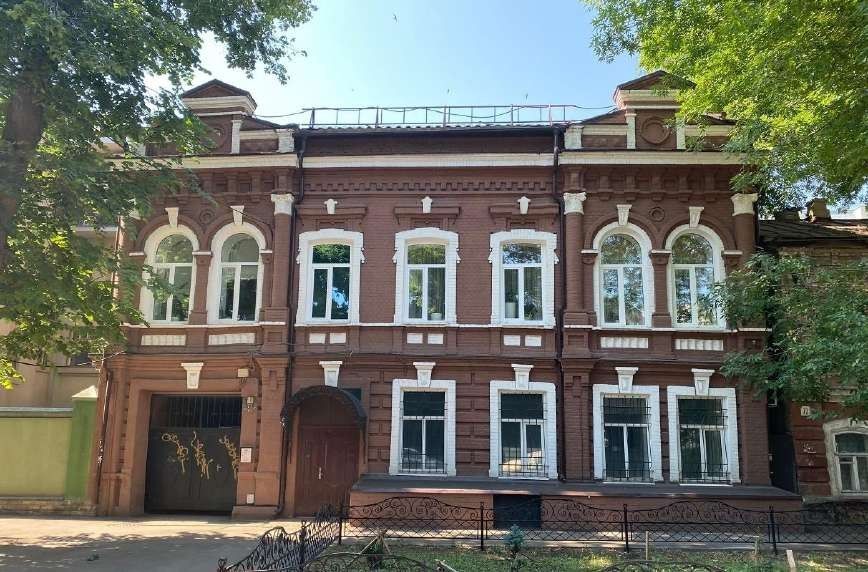 1Градостроительные характеристики:- местоположение в структуре городской застройки - по линии застройки нечетной стороны ул. им. Шевченко Т.Г., между ул. им. Рахова В.Г. и ул. им. Чапаева В.И.2Объёмно- пространственное композиционное построение здания -габариты здания (высотные и плановые габариты);-сложная форма плана.3Композиционное и архитектурно-художественное оформление фасадов3.1- северо-восточного(главного) фасада -симметричная относительно центральной оси композиция в семь световых осей с боковыми ризалитами;-проездная арка по левому ризалиту;-горизонтальное членение фасада междуэтажнымкарнизом в уровне второго этажа. 4Ризалиты – местоположение, форма, габариты, архитектурное оформление:4.1- левый ризалит северо- восточного (главного) фасада -исторические форма и габариты;-симметричная относительно центральной оси композиция в две световые оси с проездной аркой; -завершение ризалитадвухчастным аттиком из центральной части и парапетной стенки;-парапетная стенка, ограниченная тумбами;-профилированное завершение парапетной стенки и боковых тумб;-центральная часть аттика, декорированная боковымилопатками, ложным оконным проемом круглой формы с профилированным наличником;-завершение центральной части аттика треугольнымфронтоном (форма и габариты) с профилированнымобрамлением;-профилированный венчающий карниз, декорированныйкронштейнами и ширинками; - оконные проемыпрямоугольной формы с арочным завершением;- арочные перемычки;- пилястры, обрамляющие оконные проемы: гладкий ствол, кубоватая капитель, база, пьедестал;- профилированная подоконная тяга, объединяющая оконные проемы, раскрепованная по пилястрам и трехчетвертным колоннам;- профилированныеархивольты, декорированные замковыми камнями;- прямоугольные подоконные ниши, декорированные поребриком;- круглая декоративная филенка в простенке под венчающим карнизом;- трехчетвертные колонны, обрамляющие ризалит в уровне второго этажа: гладкий ствол, композитная капитель, база, пьедестал, декорированный нишей; - профилированныймеждуэтажный карниз, раскрепованный по лопаткам;- лопатки, обрамляющие ризалит в уровне первого этажа, декорированные формовочным кирпичом в завершении;- проездная аркапрямоугольной формы,декорированная клинчатой перемычкой и плоским наличником с замковымкамнем;- профилированная тяга в уровне нижнего контура оконных проемов основного объема, раскрепованная по лопаткам. 4.2- правый ризалит северо-восточного (главного) фасада -исторические форма и габариты;-симметричная относительно центральной оси композиция в две световые оси; - завершение ризалитадвухчастным аттиком из центральной части и парапетной стенки;- парапетная стенка, ограниченная тумбами;-профилированное завершение парапетной стенки и боковых тумб;- центральная часть аттика, декорированная боковымилопатками, ложным оконным проемом круглой формы с профилированным наличником;- завершение центральной части аттика треугольнымфронтоном (форма и габариты) с профилированнымобрамлением;- профилированный венчающий карниз, декорированныйкронштейнами и ширинками; - оконные проемыпрямоугольной формы с арочным завершением;- арочные перемычки;- пилястры, обрамляющие оконные проемы: гладкий ствол, кубоватая капитель, база, пьедестал;- профилированная подоконная тяга, об