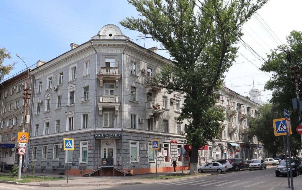 1Градостроительные характеристики:1.1Местоположение в структуре городской застройки:- по красной линии застройки улиц Б. Казачьей и им. Е.И. Пугачева.1.2Габариты, силуэт:- габариты и силуэт на дату строительства.2Архитектурные и конструктивные характеристики объекта:2.1Объемно- пространственная композиция:-конфигурация в плане (Г- образная);-количество этажей (четыре этажа);-перепады высот и высотные акценты, высотные отметки по венчающим карнизам и башенкам. 2.2Крыша:- историческая конфигурация (форма), высотные отметки по конькам и тип кровли (скатный).2.3Композиционное и архитектурно- художественное оформление фасадов:Южный (главный) фасад по улице Б. Казачья в двадцать пять световых осей.Местоположение, форма и габариты:-оконных проемов второго, третьего и четвертого этажей прямоугольной формы;-балконных дверей прямоугольной формы третьего и четвертого этажей; Вид с перекрестка -оконных проемов первого этажа с арочным полуциркульным завершением;-оконных проемов первого этажа прямоугольной формы;-дверных проемов первого этажа с арочным полуциркульным завершением.Историческая форма и габариты:-венчающего карниза большого выноса, раскрепованного на полуколоннах, поддерживаемого кронштейнами, украшенными лепным декором, с неглубокими кессонами между кронштейнами;-декоративного фриза с растительным орнаментом, рядом «сухариков» и иоников, расположенных под кронштейнами венчающего карниза;-стилизованного ризалита (высотой на три этажа – со 2- го по 4-й), выделенного на фасаде полуколоннами, опирающимися на выносную базу (в уровне перекрытия между вторым и первым этажом) с массивными кронштейнами, завершающегося треугольным фронтоном с разрывом;-квадратного окошка с декоративным обрамлением с растительным орнаментом, расположенного в тимпане фронтона;-профилированных обрамлений проемов второго и третьего этажей под стилизованными треугольными фронтонами и прямыми сандриками;Фрагмент главного фасадаОбрамления и завершения оконных проемов (треугольный фронтон, прямой сандрик)Фрагмент главного фасада- замковых камней с лепным декором;-профилированных обрамлений проемов четвертого этажа;-профилированных подоконных карнизов;-рисунка на штукатурном слое со второго по четвертый этажи, изображающего руст с расшивкой под кладку и замковые перемычки над проемами;-межэтажного профилированного карниза первого этажа с овами (иониками);-гладких лопаток высотой на три верхних этажа, обрамляющих проемы с балконами и сандриками;-руста первого этажа с прямоугольными квадрами (рустовка над полуциркульными проемами– с завязкой в слои рустики);-профилированных обрамлений проемов первого этажа;-прямоугольных ниш под окнами первого этажа.Юго-западный (угловой) фасад на пересечении улиц Б. Казачья и им. Е.И. Пугачева в одну световую ось.Местоположение, форма, габариты:-дверного проема прямоугольной формы первого этажа;-оконного проема прямоугольной формы второго этажа;-балконных дверей прямоугольной формы третьего и четвертого этажей. Дверные проемы на первом этаже Замковый камень с пальметтой Фронтон с разрывом Окошко в тимпане фронтона Массивный кронштейн балкона третьего этажа Историческая форма и габариты:-парапета с полуциркульным аттиком, декорированным по радиусу простым профилем, с круглым отверстием в тимпане и тр