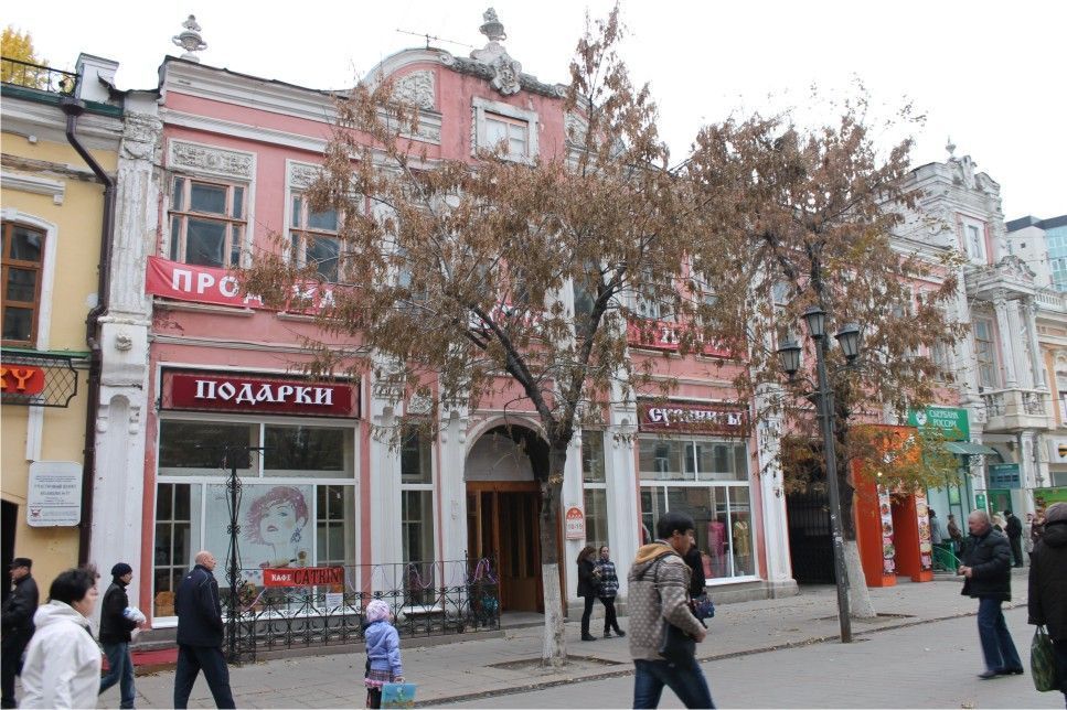 1.Местоположение Объекта в структуре города: по красной линии застройки пр. Кирова. Красный прямоугольник – исследуемый объект2. Габариты, объемно-планировочная композиция и конструктивное решение здания: этажность (двухэтажное);форма в плане (П-образная);скатная форма кровли;местоположение несущих стен.3. Материал стен – кирпичная кладка, штукатурка.4. Композиционное и архитектурно-художественное оформление главного фасада (пр. Кирова) сложившееся на период конца XIX века:9 световых осей по первому этажу;14 световых осей по второму этажустилевое решение (модерн);асимметричная композиция фасада;профиль межэтажного карниза;профиль разорванного венчающего карниза;габариты, местоположение, форма и декор парапетных столбиков и вазонов;габариты, местоположение и форма филенчатых лопаток в уровне 1-го этажа:- завершение в виде наборных кронштейнов,- маскарон с гирляндами;габариты, местоположение, форма и декор плоских пилястр в уровне 2-го этажа:- стилизованная капитель ионического ордера,- гирлянда под капителью,- каннелюры;габариты, местоположение, форма и декор полуколонн ионического ордера в уровне 2-го этажа с гирляндами и каннелюрами;местоположение, форма и профиль филенок над окнами в уровне 1-го этажа;местоположение, форма, габариты и декоративное оформление аттика левого крыла:- завершение аттика разорванным фронтоном с картушем и лепным декором;- разорванный карниз с лепниной;- форма, местоположение, декоративное оформление лепного декора над карнизом;- местоположение, форма слухового окна с обрамлением и гирляндами;форма, местоположение, габариты и декоративное оформление трехэтажного ризалита:- форма завершения ризалита с валютами, картушем и вазоном;- фриз главного фасада ризалита с лепниной и маскаронами;- вынос, габариты и форма венчающего карниза боковых фасадов в уровне 3-го этажа;- прямоугольная форма окон в уровне 3-го этажа ризалита;- обрамление окна в уровне 3 этажа с гирляндами;- габариты, местоположение, форма и декор пилястр ризалита в уровне 2-го и 3-го этажа с капителями ионического ордера, каннелюрами и гирляндами под капителями;- декоративное оформление балкона:a)ограждение балкона с балясинами, парапетными столбиками и маскароном,a)колонны ионического ордера с каннелюрами и гирляндами под капителью,b)форма завершения фронтона балкона с валютами, картушем и маскароном.4.2 Габариты, местоположение и декор световых осей:форма проездной арки;полуциркульное завершение проемов входных дверей;прямоугольная форма окон;витринные окна в уровне 1-го этажа;обрамление окон в уровне 2-го этажа с лепным декором;имитация сандриков с лепным декором и маскаронами в уровне 2-го этажа;историческая расстекловка окон в уровне 2-го этажа.Пр. Кирова