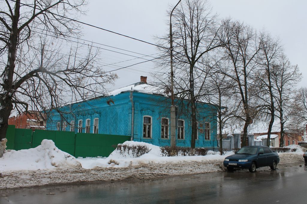 1. Местоположение Объекта в структуре города: •по линии застройки ул. Советская. Оранжевый квадрат – исследуемый объект2. Габариты, объемно-планировочная композиция и конструктивное решение здания (литера Аа): •этажность (одноэтажное);•форма в плане (сложная);•кровля – вальмовая; •местоположение несущих стен;•деревянный каркас, обшитый деревянными досками. План дворового участка, БТИ 1956 г. План первого этажа, БТИ 1956 г. 2.1. Главный (южный) фасад по ул. Советская:•на 5 световых осей.2.2. Боковой (западный) фасад:•на 6 световых осей.2.3. Торцевой (северный) фасад:•на 3 световые оси.2.4. Боковой (восточный) фасад:•на 9 световых осей. Главный (южный) фасад по ул. Советская Боковой (западный) фасад Торцевой (северный) фасад Боковой (восточный) фасад, правая часть Боковой (восточный) фасад, левая часть3. Композиционное и архитектурно-художественное оформление фасадов, сложившееся на период конец XIX в.:•стилевое решение фасадов (русское деревянное зодчество); •профиль, вынос и характер обшивки венчающего карниза;•обшивка фасадов «елочкой», переходящая в квадрат; •свесы карниза пирамидальной формы; •стенные подзоры в виде ряда стилизованных цветков, по периметру стен; •местоположение, габариты пилястр по всем фасадам; •резной декор пилястр:- профиль капители и обшивка «елочкой»; - декор капители пилястры (накладная пропильная резьба в виде «диагонального креста», обрамленная по периметру пояском из «сколышков»);- оформление боковых граней капители («лесенка» с зубчиками наклонная и ананас);- резной декор центральной части пилястры (резные цветы по углам; угловая «лесенка», по бокам; розетки (центральная в виде перекрестья ростков, крайние - в виде восьмилучевого колеса), вплетенные в растительный орнамент);- декор низа пилястры (накладная пропильная резьба в виде «диагонального креста», обрамленная по периметру пояском из «сколышков»);- оформление боковых граней капители («лесенка» с зубчиками наклонная и ананас);- профиль и обшивка «елочкой» базы пилястры; •вынос и профиль цокольной части;•местоположение, габариты и материал рядя полукруглых дентикул, в подкарнизной части цоколя;•рустовка фламандской (голландской) перевязкой. Парадное крыльцо (тамбур)•местоположение и профиль килевидного свода;•профиль и вынос разорванного карниза; •декор фриза: портьеры, перетянутые шнурами с кисточками; •декор карниза килевидного свода:- «жгут»;- ряд сухариков;- ряд растительных завитков;- резьба «витейка»;- виноградная гроздь;- декор фриза арки (сухарики, полукружья с каплями и точками);•медальон, украшенный «жгутом», и резными флоральными завитками; •резной декор пилястр:- профиль капители и обшивка «елочкой»; - декор капители пилястры, накладная пропильная резьба в виде «диагональных крестов»;- оформление боковых граней капители («лесенкой» с зубчиками наклонная);- декор центральной части пилястры (рельефная резьба, узоры растительных мотивов);- профиль и декор базы пилястры;- портьера, перетянутая шнурами с кисточками;- оформление центральной части (ромбы, стилизованные под бутон, боковина обрамлена «жгутом»);- оформление нижней части (пирамидальный квадр); •угловой декор в уровне цоколя:- оформление верхней части (пирамидальный квадр, провисающий «жгут»),- оформление центральной части (перевернутый ромб, стилизованный под бутон); •местопол