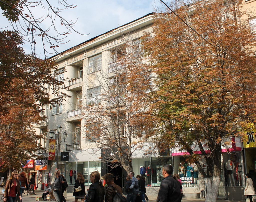 1. Местоположение Объекта в структуре города: по красной линии застройки пр. КироваОранжевый квадрат – исследуемый объект2. Габариты, объемно-планировочная композиция и конструктивное решение здания: •этажность (четырехэтажное);•форма в плане (Т-образная);•кровля – вальмовая; •местоположение наружных несущих стен.План БТИ 2006 г. пр. Кирова 2.1. Главный уличный фасад: - на 9 световых осей;3. Материал стен: кладка из облицовочного кирпича;оштукатуренный венчающий карниз и фриз. 4. Композиционное и архитектурно-художественное оформление фасадов сложившийся на период сер. XX в.:стилевое решение фасада (конструктивизм);симметричная композиция фасада;раскреповка центральной части фасада;местоположение и габариты трёх прямоугольных в плане эркеров, со скруглёнными углами; профиль и вынос венчающего карниза;рельефная надпись на фризе «НОВЫЙ «жскт-во рабочий» БЫТ» 1927 г.; местоположение и габариты балконов в уровне 2-го, 3-го и 4-го этажей; местоположение, габариты, материал и художественное оформление ограждения балконов. 5. Габариты и местоположение световых осей и декоративных элементов световых осей:прямоугольная форма окон, вытянутых по горизонтали;прямоугольная форма окон, вытянутых по вертикали;историческая расстекловка.