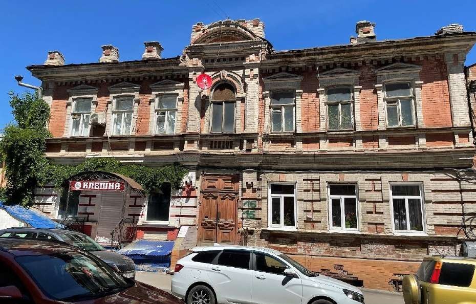 1Градостроительные характеристики:- местоположение в структуре городской застройки - по линии застройки четнойстороны ул. Соляная, между ул. им. Чернышевского Н.Г. и ул. им. Лермонтова М.Ю.2Объёмно - пространственное композиционное построение здания -высотные и плановые габариты здания;-прямоугольная форма плана с дворовым пристроем по северо- восточному фасаду.3Композиционное и архитектурно-художественное оформление фасадов3.1- юго-западного(главного) фасада -симметричная относительно центральной оси композиция в семь световых осей;-трехчастная симметричная композиция с центральным ризалитом;-горизонтальное членениефасада междуэтажным карнизом в уровне второго этажа. 3.2-северо-западного (бокового) фасада - симметричная относительно центральной оси композиция в три световых оси в уровне второго этажа;-горизонтальное членениефасада в уровне второго этажа узким профилированным подоконным карнизом,объединяющим оконные проемы;-горизонтальное членениефасада широким междуэтажным профилированным карнизом.4Ризалиты – местоположение, форма, габариты, архитектурное оформление:4.1- центральный ризалит юго-западного (главного) фасада -исторические форма и габариты;-симметричная относительно центрально оси композиция в одну световую ось;-боковые пилястры в уровне второго этажа декорированные формовочным кирпичом: форма, габариты, гладкий ствол,стилизованная капитель, пьедестал, декорированный квадратной нишей;-боковые пилястры в уровне первого этажа: форма, габариты, рустованный ствол,стилизованная капитель;-рельефный руст в уровне первого этажа; -прямоугольный аттик с накладным циркульным фронтоном, декорированным дентикулами;-профилированный венчающий карниз, декорированныйдентикулами; -оконный проем прямоугольной формы с арочным завершением;-арочная перемычка;-пилястры, обрамляющие оконный проем: профилированная капитель, гладкий ствол, база;-стилизованный архивольт, опирающийся на пилястры, обрамляющие оконный проем, декорированный замковымкамнем: форма, габаритыархитектурное оформление;-узкий профилированный подоконный карниз,раскрепованный по пилястрам, объединяющий оконные проемы по нижнему контуру;-подоконная декоративная композиция из шестипрямоугольных ниш,ограниченная пьедесталами по осям пилястр, обрамляющих оконный проем;-рисунок расстекловки оконного проема; -профилированныймеждуэтажный карниз,раскрепованный по пилястрам;-дверной проем прямоугольной формы;-клинчатая перемычка;-заполнение дверного проема двустворчатой дверью измассива дерева с верхней глухой фрамугой;-декоративное оформление дверей и фрамуги. 5Характер отделки фасадов:5.1-юго-западного (главного) фасада первого-второго этажа-северо-западного (бокового) фасада второго этажа - открытая кирпичная кладка;5.2- юго-западного (главного) фасада первого этажа - рельефный руст.6Световые проемы – местоположение, форма, габариты и архитектурное оформление:6.1- первого этажа основного объема юго- западного(главного) фасада -оконный проем прямоугольной формы;-клинчатая перемычка с замковым камнем;- плоский наличник;- профилированный подоконный карниз;- подоконная ниша прямоугольной формы. 6.2-второго этажа основного объема юго- западного(главного) фасада-второго этажа северо- западного (бокового) фасада по первой и второй световым осям 