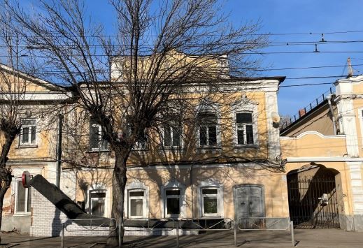 3.«Флигель юго-западный», первая половина XIX века, (Саратовская область, г. Саратов, ул. Московская, д. 24 (литер Б)3.1Градостроительные характеристики:3.1.1- местоположение в структуре городской застройки - по линии застройки четной стороны ул. Московской,между ул. им. Мичурина И.В. и ул. Вознесенской. 3.1.2- местоположение в структуре Ансамбля- по юго-западной границе исторического домовладения.3.2Объёмно- пространственное композиционное построение здания-габариты здания (высотные и плановые габариты);-сложная близкая кпрямоугольной форма плана.3.3Композиционное и архитектурно-художественное оформление фасадов3.3.1- юго-западного (главного) фасада -симметричная относительно центральной оси композиция в пять световых осей с входным проемом;-горизонтальное членение фасада междуэтажнымкарнизом в уровне второго этажа.3.4Характер отделки фасадов:3.4.1- юго-западного (главного) фасада - отделка гладкой штукатуркой. 3.5Световые проемы – местоположение, форма, габариты и архитектурное оформление:3.5.1- юго-западного (главного) фасада первого этажа-оконный проемпрямоугольной формы с лучковым завершением;-профилированный наличник с фигурным завершением из двух волют.3.5.2- юго-западного (главного) фасада второго этажа-оконный проемпрямоугольной формы с лучковым завершение;-профилированный наличник с ушками;-профилированный подоконный карниз,декорированный стилизованной аркатурой;-фигурный профилированный сандрик из двух волют сзамковым камнем;-рисунок расстекловки оконного проема.3.5.3- входной проем юго- западного (главного) фасада по первойсветовой оси от ул. им. Мичурина И.В.-входной проем прямоугольной формы с лучковымзавершением;-профилированныйдеревянный наличник;-двустворчатое заполнение дверного проема;-деревянные двери,декорированные трехчастной филенкой (рисунок, форма, габариты филенки) 3.6Элементы вертикального членения фасада - архитектурное оформление, местоположение, форма и габариты:3.6.1- боковые лопатки юго-западного (главного) фасада вуровне второго этажа -форма и габариты лопатки;-филенчатый ствол лопатки.3.7Элементы горизонтального членения - архитектурное оформление, форма и габариты:3.7.1- междуэтажныйкарниз юго-западного (главного) фасада- узкий профилированный междуэтажный карниз.3.7.2- венчающий карниз юго-западного (главного) фасада- профилированный венчающий карниз, декорированныйаркатурой с розетками.3.8Аттик – архитектурное оформление, местоположение, форма и габариты:3.8.1- юго-западного (главного) фасада по второй-четвертойсветовым осям -форма и габариты аттика;-боковые тумбы с профилированным завершением;-фигурное профилированное завершение аттика.