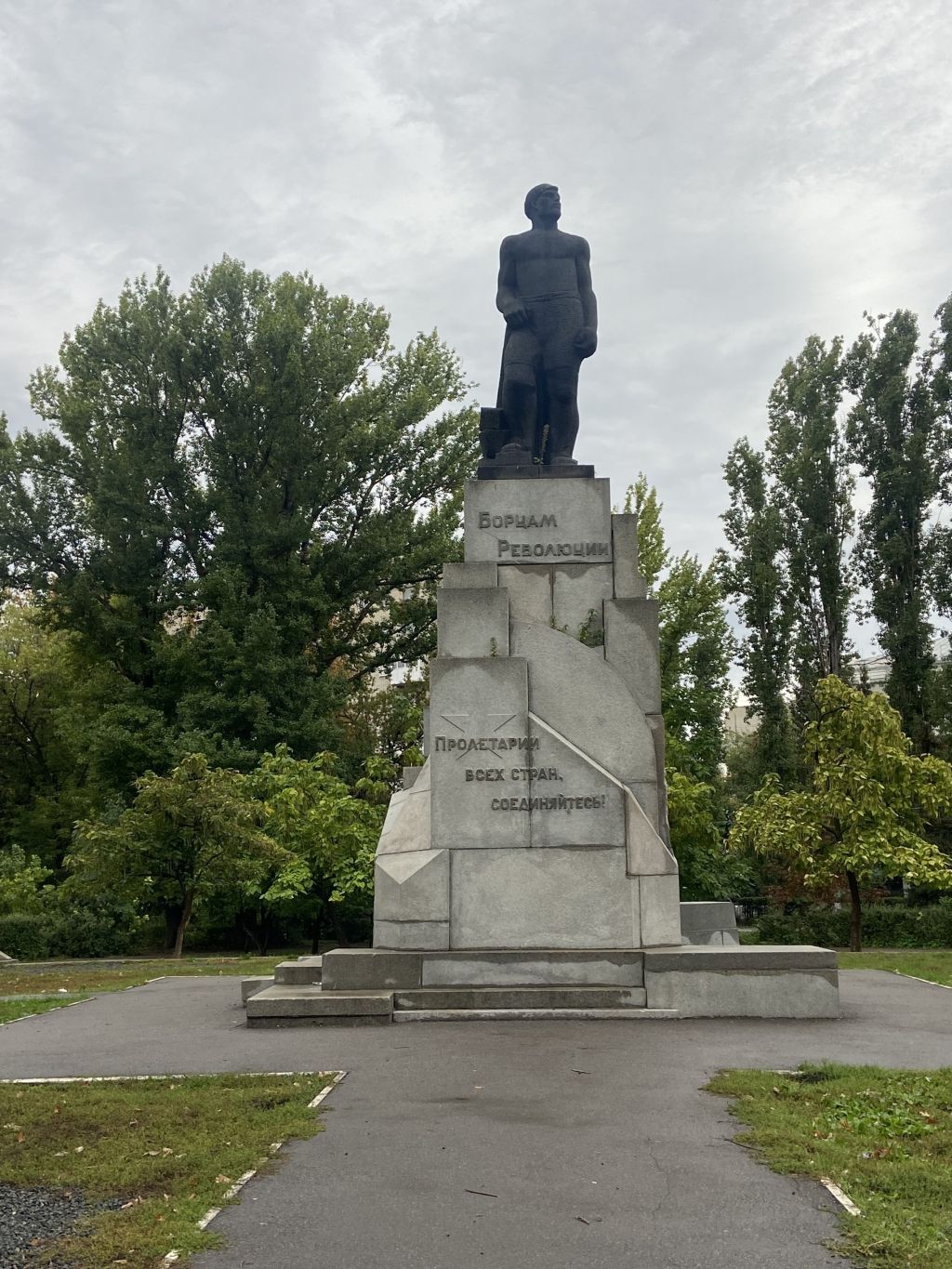 Местоположение объекта, объемно-пространственная композиция, габариты и внешний вид памятника.Архитектурно-художественное решение памятника, сложившееся на 1925 г.Элементы памятника:- скульптура (черный гранит);- пьедестал (серый гранит);- барельефы пьедестала;- подиум серый (серый гранит);- 4 угловые стелы (серый гранит).