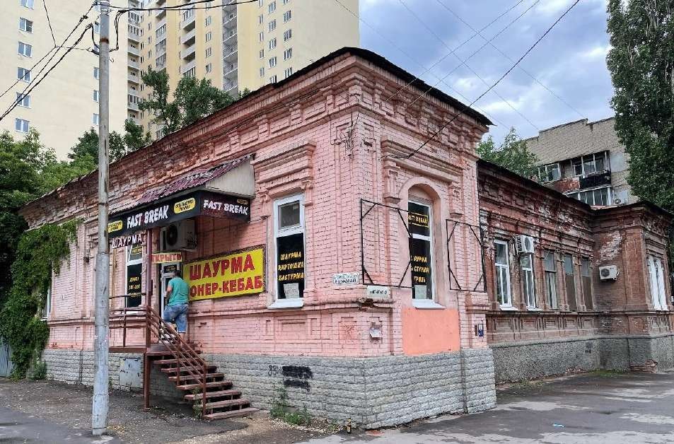 1Градостроительные характеристики:- местоположение в структуре городской застройки - на пересечении ул.Шелковичная (четная сторона) и ул. им. Симбирцева В.Н.(четная сторона).2Объёмно- пространственное композиционное построение здания -габариты здания (высотные и плановые габариты);-сложная форма плана.3Композиционное и архитектурно-художественное оформление фасадов3.1- юго-западного фасада по ул. Шелковичной - асимметричная композиция из центральной части ибоковых выступов;- центральная часть в семь световых осей;- правый выступ в две световые оси;- левый выступ в одну световую ось.3.2- юго-восточного (бокового) фасада - асимметричная двухчастная композиция, состоящая из основного объема в шестьсветовых осей и пристроя в две световые оси. 4Выступ – местоположение, форма, габариты, архитектурное оформление:4.1- правый выступ юго- западного фасада по ул. Шелковичной -форма и габариты выступа;-симметричная относительно центральной оси композиция в две световые оси;- профилированный венчающий карниз, декорированный кронштейнами с прямоугольнымидекоративными элементами;- угловые лопатки: форма и габариты, филенчатый ствол, филенчатый пьедестал;- прямоугольная форма оконного проема с арочным завершением;- пилястры, обрамляющие оконные проемы: форма и габариты, гладкий ствол,стилизованная капитель из формовочного кирпича, база пилястры, филенчатый пьедестал пилястры;- подоконные филенки прямоугольной формы;- профилированный сандрик, опирающийся на пилястры, объединяющий оконные проемы.4.2- левый выступ юго- западного фасада по ул. Шелковичной -форма и габариты выступа;-симметричная относительно центральной оси композиция в одну световую ось;- профилированный венчающий карниз, декорированный кронштейнами с прямоугольнымидекоративными элементами;- угловые лопатки: форма и габариты, филенчатый ствол, филенчатый пьедестал;- пилястры, обрамляющие световой проем: форма и габариты, гладкий ствол,стилизованная капитель из формовочного кирпича;- профилированный сандрик, опирающийся на пилястры. 5Характер отделки фасадов:5.1- северо-западного фасада по ул. им.Симбирцева В.Н., юго- западного фасада по ул. Шелковичной июго-восточного (бокового) фасада - открытая кирпичная кладка.6Световые проемы – местоположение, форма, габариты и архитектурное оформление:6.1-северо-западного фасада по ул. им.Симбирцева В.Н. по первой, третьей-пятой световым осям от ул. Шелковичной-центральной части юго-западного фасада по ул. Шелковичной-северо-восточного фасада по первой и второй световым осям от ул. им. Симбирцева В.Н. -оконный проём прямоугольной формы;-пилястры, обрамляющие оконный проем: форма и габариты, гладкий ствол,стилизованная капитель из формовочного кирпича, база пилястры, филенчатый пьедестал пилястры;-профилированный сандрик, опирающийся на пилястры;-подоконная филенка прямоугольной формы.6.2-юго-восточного(бокового) фасада по первой, третьей-шестой световым осям от ул.Шелковичной-северо-восточного фасада по четвертой и пятой световым осям от ул. им. Симбирцева В.Н. -оконный проёмпрямоугольной формы;-пилястры, обрамляющие оконный проем: форма и габариты, гладкий ствол, простая капитель изформовочного кирпича, база пилястры, пьедестал пилястры;-профилированный сандрик, опирающийся на пилястры;- подоконная филенка прямоугольной формы. 6.3- ложн
