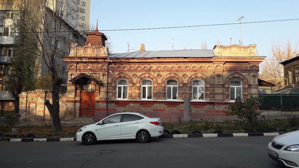 Градостроительные характеристики:- местоположение в структуре городской застройки. По линии застройки нечетной стороны ул. Комсомольской между улицами Волжской и им. Мичурина И.В.Композиционное и архитектурно-художественное оформление главного (юго-восточного) фасада- шесть световых осей, расположенных симметрично относительно центральной оси;- стилевое решение –эклектика (техника открытого кирпича); - вертикальное членение фасада за счет двух боковых ризалитов, завершенных аттиками и главками.Местоположение, архитектурное оформление световых проемов первого этажа- историческая форма и габариты с клинчатой перемычкой;- сандрик сложной формы с верхним защипом, поддерживающий на колонках сложной формы с прямоугольным сечением;- объединение оконных проемов по нижнему контору пояском ступенчатой формы;- форма и габариты подоконного карниза.Местоположение вертикального членения фасада, архитектурное оформление пилястры ризалита- исторические габариты;- наборная форма.Элементы горизонтального членения фасада- венчающий карниз- исторические форма и габариты;- развитый фриз с аркатурным поясом, заключенный между поясками ступенчатой формы.- цоколь - исторические габариты; - ступенчатой формы, оштукатуренный.Месторасположение и архитектурное оформление аттиков - исторические форма и габариты с выпуклой аркой в центральной части.Местоположение, архитектурное оформление башенки ризалита - исторические форма и габариты;- четырехгранный шатер с металлическим покрытием по форме «шашечки» со шпилем.Местоположение, архитектурное оформление простенков- исторические габариты;- сложная форма с применением формовочного кирпича.Местоположение, архитектурное оформление входной двери- историческая форма и габариты с клинчатой перемычкой;- стилизованный сандрик ступенчатой формы;- деревянные полотна со стилизованными филенками и верхней фрамугой.Местоположение, архитектурное оформление козырька- историческая форма и габариты;- стилизованный, металлический кронштейн.