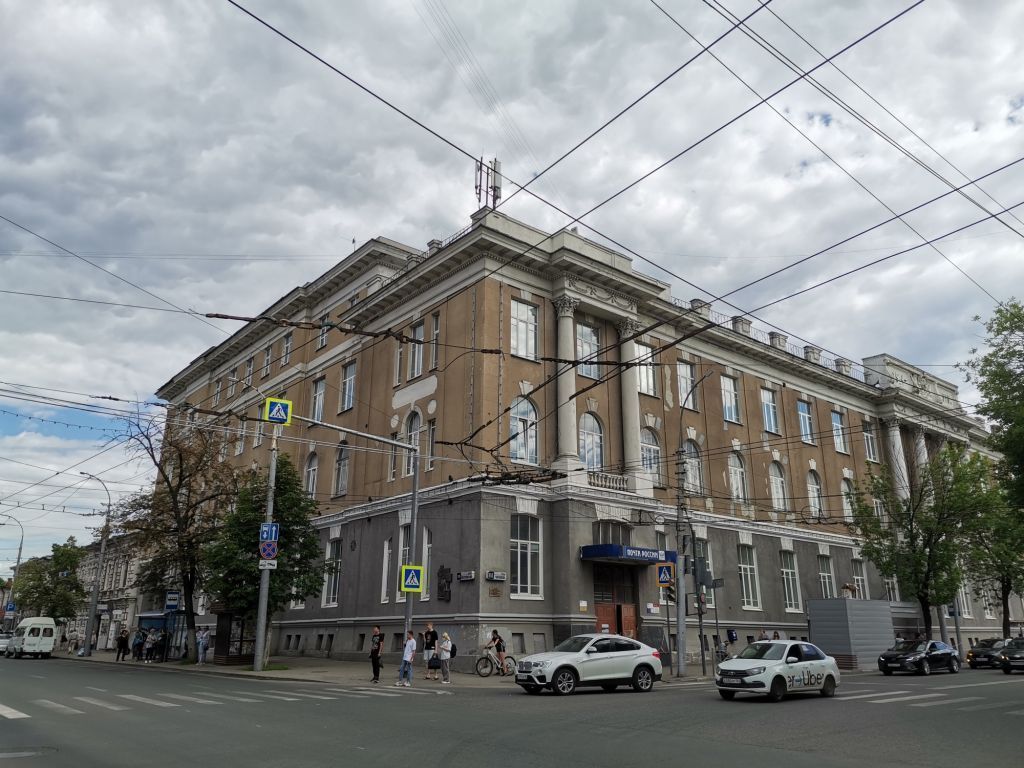 1) Местоположение и градостроительные характеристики: Объект расположен по линии городской застройки на пересечении улиц Московской и Чапаева В.И., Чапаева В.И. и Киселева Ю.П (формирует два угла квартальной застройки) 2) Объемно-пространственная композиция и силуэтные характеристики:- объем представляет собой строение переменной этажности: основной объем здания трехэтажный вытянутый вдоль по ул. им. Чапаева В.И., боковые объемы – в четыре этажа располагаются по ул. им. Киселева Ю.Л. и ул. Московская. Под всем зданием имеется подвал;- габариты здания на период 1916г.;- \"Е\"-образная форма в плане;- трапециевидная форма цоколя с нишами, в которых некогда размещались оконные проемы квадратной и прямоугольной конфигурации;- двухскатная вальмовая форма крыши.2.1) Стилистическое решение, характер обработки стен всех фасадов:- стилистически здание относится к неоклассическому стилю;- вид обработки фасадной поверхности: окраска по штукатурке.3) Архитектурные характеристики: Северный фасад (по ул. Московская)- несимметричный фасад решен в 12 световых осей;- крылья здания 4-х этажные;- горизонтальные членения - по линии цоколя, межэтажная тяга, венчающий карниз с тянутым лепным декором. - вертикальные членения - ризалит, выделяющий вход в здание с единой осью из трех окон;- слева от входа сквозной проезд во внутридомовое пространство. - трехэтажная часть имеет ось симметрии, подчеркнутую группировкой окон – по три на каждом этаже с выделением широкого центрального окна;- торец здания обрамлен рустованными лопатками (руст слабо выражен). Южный фасад (по ул. Киселева Ю.П.):- несимметричный фасад решен в 13 световых осей;- крылья здания 4-х этажные;- горизонтальные членения - по линии цоколя, межэтажная тяга, венчающий карниз с тянутым лепным декором.-вертикальные членения - ризалит, выделяющий вход в здание, с единой осью из трех окон;- справа сквозной проезд во внутридомовое пространство. - трехэтажная часть имеет ось симметрии, подчеркнутую группировкой окон – по три на каждом этаже с выделением широкого центрального окна;- обрамлен рустованными лопатками (руст слабо выражен).Западный фасад (по ул. Московская):- симметричный фасад решен в 20 световых осей;- горизонтальные членения - по линии цоколя, межэтажная тяга, венчающий карниз с тянутым лепным декором.- вертикальные членения - имеет трехчастное деление:- выделяются широкий центральный и два боковых ризалита с портиками в одну ось.- ризалиты выделены колоннами коринфского ордера на мощных пьедесталах по 2 и 3 этажу;- центральный ризалит с 4-мя колоннами, боковые с 2-мя колоннами;- центральный и боковые ризалиты увенчаны аттиками с лепным декором; - в простенках расположены рустованные лопатки (руст слабо выражен). - лепной картуш на аттике представляет собой серп и молот (поздний, сер. ХХ в.), обрамленный венком и датами постройки здания «1914 и 1916 г»;- над колоннами фриз украшен лепным растительным орнаментом в виде гирлянд - это единственный сохранившийся элемент- между аттиками располагается ограждение, состоящее из кирпичных парапетных столбиков (металлическое ограждение позднее, кон. ХХ в.) - ризалиты обозначены балюстрадой из глухих балкончиков с кувшинообразными балясинами по уровню окон 2-го этажа.- выносной венчающий карниз по фигурным деревянным балкам на дворовом фасаде;4) Форма и габариты оконны