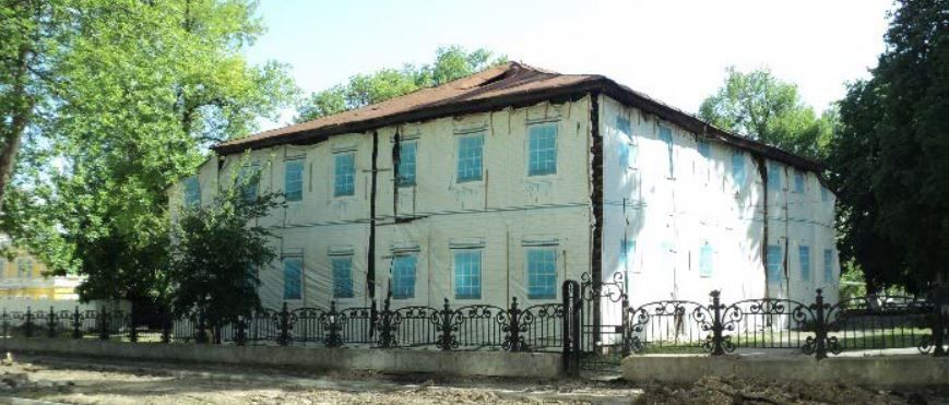 1. Градостроительные характеристики:- местоположение Объекта на территории ГУЗ «Саратовская городская клиническая больница № 1 им. Ю.Я. Гордеева». Красным обозначена территория ГУЗ «Саратовская городская клиническая больница № 1 им. Ю.Я. Гордеева»;Зеленым контуром выделено местоположение исследуемого объекта.2. Габариты, объемно-планировочная композиция Объекта:- 2-х этажное здание квадратное в плане;- кровля вальмовая;- высотные отметки венчающего карниза здания;- местоположение наружных стен.3. Отделка наружных стен: обшивка деревянной доской, сечение обшивки. - местоположение наружных стен, форма в плане Фрагмент фасада. Конфигурация обшивной доски Сечение4. Композиционное оформление северо-восточного фасада по ул. Шелковичная:- шесть световых осей в габаритах квадратного плана, одна световая ось в пристройке;- прямоугольная форма и габариты оконных проемов;- расстекловка окон;- прямоугольная форма и габариты двупольной двери с фрамугой, рисунок полотна.Рисунок полотна двери Расстекловка оконСеверо-восточный фасад по ул. Шелковичная