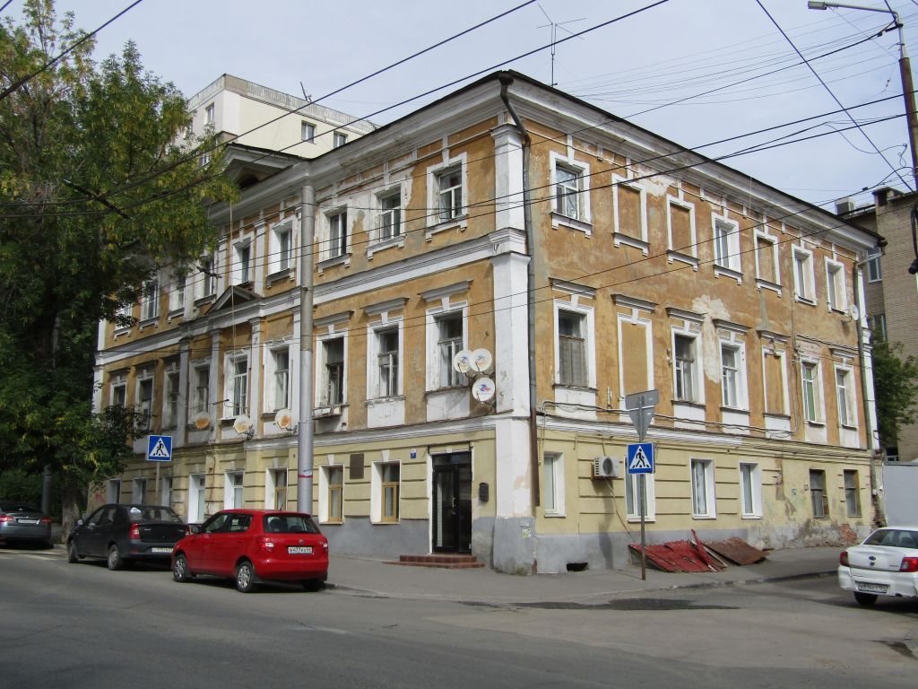 Особенностями, составляющими предмет охраны Объекта и подлежащими сохранению при осуществлении всех видов градостроительной и хозяйственной деятельности в границах территории Объекта, являются:1.Местоположение Объекта в структуре города: угловое положение по красной линии застройки улицы Челюскинцев и Песковского переулка в Волжском районе г. Саратова,.2.Габариты и объемно-планировочная композиция Объекта: •Трехэтажный с подвалом объем здания; •П-образная форма плана;•Главный фасад по ул. Челюскинцев на 9 световых осей;•Боковые фасады на 7 световых осей;•Дворовый фасад на 8 световых осей;•Скатная форма кровли;3.Материал стен (глиняный кирпич, штукатурка), цвет стен – охра, цвет архитектурных деталей - белый.4.Композиционное и архитектурно-художественное оформление фасадов: •Оформление фасада в стиле «классицизма»;•Композиция фасада – центрально симметричная; •Четкий ритм световых проемов по главному фасаду;•Местоположение и габариты линейного руста стен первого этажа;•Центральная часть главного фасада, выделенная раскреповкой на три световых оси, и завершенная фронтоном;•Местоположение, форма и габариты фронтона с полукруглым слуховым окном по центру;•Местоположение, габариты и четкий ритм декора фриза – триглиф;•Местоположение и габариты пилястр главного фасада;•Местоположение и профиль венчающего и междуэтажного (между первым и вторым этажами) карнизов здания;•Местоположение и профиль карниза между вторым и третьем этажами – уличный фасад по ул. Челюскинцев;•Местоположение и габариты филенок под межэтажным карнизом;•Имитация портика – центральная ось главного фасада в уровне 2-го этажа; •Композиция дворового фасада – центрально симметричная; •Открытая галерея в уровне первого (со стороны двора – цокольного) этажа;•Открытая терраса в уровне 1-го этажа, поддерживаемая пятью колоннами дорического ордера (дворовый фасад);•Балкон в уровне 2-го этажа, поддерживаемый пятью колоннами дорического ордера (дворовый фасад);•Местоположение, материал и габариты колонн – две пристенные и три промежуточные, из красного кирпича, оштукатуренные, высотой - на два этажа;•Местоположение и габариты арочных сводов в уровне первого (со стороны двора – цокольного) этажа;5.Габариты и местоположение световых осей:•Обрамление окон;•Рисунок исторической расстекловки и декор окон 2-го и 3-го этажей (сандрики классической треугольной формы, замковые камни);6.Конструктивное решение:•Местоположение несущих внутренних стен;•Арочные проемы в несущих стенах подвала;•Местоположение и габариты лестниц.