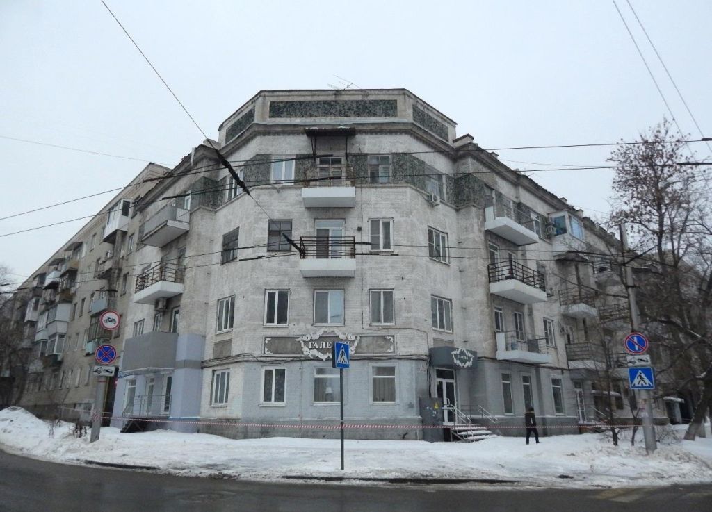 3.3Композиционное и архитектурно-художественное оформление фасадов3.3.1- юго-восточного (бокового) фасада: -асимметричная композиция в тринадцать световых осей;-три ризалита: правый в две световые оси; центральный в четыре световые оси; левый в четыре световые оси. 3.3.2- юго-восточного (углового) фасада: - симметричная композиция в три световые оси.3.3.3- юго-западного (бокового) фасада: -асимметричная композиция в четыре световые оси;-ризалит в три световые оси.3.3.4- северо-восточного (дворового) фасада: - асимметричная композиция в три световые оси. 3.3.5- северо-западного (дворового) фасада: -асимметричная композиция в четырнадцать световых осей;-ризалит в три световые оси.3.4Композиционное и архитектурно-художественное оформление по входной оси:3.4.1- южного угла дворовых фасадов: -симметричная композиция в одну световую ось;-прямоугольная форма входного проема;-прямоугольная форма оконного проема в уровне второго-четвертого этажей;-рисунок расстекловки оконного проема;-профилированный венчающий карниз.3.5Характер отделки фасадов:3.5.1- цоколя юго-восточного (бокового), юго- восточного (углового) и юго-западного(бокового) фасадов: - штукатурная имитация рельефного квадрового руста.3.5.2- юго-восточного (бокового), юго-восточного (углового), юго-западного(бокового), северо- восточного (дворового), северо-западного(дворового) фасадов: - открытая кирпичная кладка.3.5.3- юго-восточного (бокового), юго-восточного (углового), юго-западного(бокового), северо- восточного (дворового), северо-западного(дворового) фасадов: - декоративная камешковая штукатурка (под терразитовую) свключением слюды. 3.5.4-под оконнымипроемами второго этажа основного объема юго- восточного (бокового) и юго-западного(бокового) фасадов;-под оконнымипроемами второго этажаюго-восточного (углового) фасада: -профилированные подоконные ниши прямоугольной формы;-отделка плоскости ниши рельефной декоративной штукатуркой.3.5.5- над оконными проемами по линии входных проемов юго- восточного (бокового) фасада: -панно прямоугольной формы;-рисунок заполнения;-материал заполнения: цветная плитка.3.6Световые проемы – местоположение, форма, габариты и архитектурное оформление:3.6.1первого-четвертого этажей:-основного объема и ризалитов юго- восточного (бокового) фасада;-третьей световой оси от ул. им. Некрасова Н.А. северо-восточного(дворового) фасада;-третьей световой оси ризалита северо-западного (дворового) фасада;-восьмой-девятой,четырнадцатой световой оси от пр-д им.Котовского Г.И. основного объема северо-западного (дворового) фасада;-первого-второго этажей юго-восточного (углового) фасада;-ризалита и основного объема юго-западного (бокового) фасада: -квадратная форма оконного проема;-рисунок расстекловки оконного проема. 3.6.2-второго-четвертого этажей правого, центрального и левого ризалитов юго- восточного (бокового) фасада с балконом;-третьего-четвертого этажей юго-восточного (углового) фасада: -прямоугольная форма оконного проема сбалконной дверью;-рисунок расстекловки светового проема;-форма и габариты балкона с ограждением изметаллических прутьев;-три кронштейна под балконом.3.6.3- второго-четвертого этажей основного объема юго-восточного(бокового) фасада по входной оси: -прямоугольная форма оконного проема;-рисунок расстекловки оконного проема.3.6.4-второго-четвертого этажей левого ризал