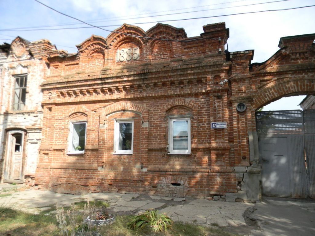3. «Лавка с хозяйственным пристроим»,1885 г., 1890 г. (Саратовская область, г. Балаково, ул. Московская, д. 47, лит. Б, Г)3.1.Градостроительные характеристики:- местоположение в структуре ансамбля: - по линии застройки нечетной стороны ул. Московской. 3.2.Композиционное построение и архитектурно-художественное оформление фасадов:3.2.1- главного (северного) фасада: -симметричная относительно центральной оси фасада композиция в три световые оси;-горизонтальное членение цоколем;3.2.2- бокового (восточного) фасада: -ассиметричная композиция в семь световых осей;-горизонтальное членение цоколем;-вертикальное членение лопатками.3.3.Световые проемы главного (северного) фасада – месторасположение, габариты,архитектурное оформление:3.3.1- по первой и третьей световым осям: -исторические габариты и форма с лучковой перемычкой;-плоский наличник сложной формы с висячими гирьками и замковым камнем (форма, профиль декора из формовочного кирпича) ;-форма и габариты подоконной ниши; 3.3.2- по центральной световой оси: -исторические габариты и форма с лучковой перемычкой;-плоский наличник с замковым камнем, повторяющий форму проема;3.3.3- бокового (восточного) фасада: -исторические габариты и форма с лучковой перемычкой;-валик, объединяющий оконные проемы по нижнему контору.3.4.Элементыгоризонтальногофасадов–местоположение,форма,габариты,архитектурное оформление:3.4.1- венчающий карниз главного (северного) фасада: -исторические габариты и форма;-развитый карниз с декором из формовочного кирпича (форма, профиль и рисунок) ;3.4.2-цоколь главного (северного) и бокового (восточного) фасадов: -исторические габариты и форма;-декор из формовочного кирпича (профиль, форма) ;3.4.3-венчающий карниз бокового (восточного) фасада: -исторические габариты и форма;-декор из формовочного кирпича в виде зубцов. 3.5.Элементы вертикального членения главного (северного) фасада – местоположение,форма, габариты, архитектурное оформление:3.5.1- боковые пилястры; -исторические габариты и форма;-декор из формовочного кирпича (форма, габариты, рисунок, профиль) ;-ниши (форма, габариты) ;3.5.2 - лопатки: -исторические габариты и форма;-гладкий ствол лопатки.3.6.Аттик – местоположение, форма, габариты, архитектурное оформление:3.6.1- главный (северный) фасад: -прямоугольный аттик по всей ширине фасада, с тремя килевидными кокошниками по оси композиции, фланкирующими тумбами и филенчатым декором из формовочного кирпича;-лепной гипсовый декор в виде цифр«1885» в нише центрального более крупного кокошника.