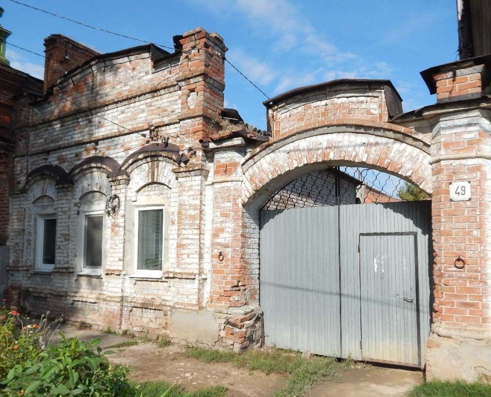 3. «Лавка с воротами», конец ХIХ в. (Саратовская область, г. Балаково, ул. Московская, д. 49 (литер Ббб1)3.1 Градостроительные характеристики:3.1.1 - местоположение в структуре городской застройки - по линии застройки ул. Московская (нечетная сторона), между ул. Ленина и ул. 20 лет ВЛКСМ 3.1.2 - местоположение в структуре ансамбля - по линии застройки ул. Московская (нечетная сторона), в юго-западной части исторического домовладения.3.2 Объёмно-пространственное композиционное построение здания со всеми фасадами - габариты здания (высотные и плановые габариты);- прямоугольная форма плана с пристройками по северо-восточному (дворовому) фасаду;- ворота.3.3 Композиционное и архитектурно-художественное оформление фасадов 3.3.1 - юго-западного (главного) фасада- симметричная относительно центральной оси композиция в три световые оси.3.4 Характер отделки фасадов:3.4.1 - юго-западного (главного) фасада - открытая кирпичная кладка.3.5 Декор – архитектурное оформление, местоположение, форма и габариты:3.5.1 - юго-западного (главного) фасада - лучковая перемычка;- пилястры в простенках (форма и габариты);- декоративное оформление пилястры: гладкий ствол, декорированный формовочным кирпичом;профилированная капитель;пьедестал;- профилированный архивольт, опирающийся на пилястры;- фигурная подоконная ниша (форма и габариты);- фигурная ниша в уровне цоколя (форма и габариты).3.6 Элементы вертикального членения - архитектурное оформление, форма и габариты:3.6.1 - боковые лопатки юго-западного (главного)фасада- форма и габариты;- гладкий ствол,декорированный фигурнойнишей в завершении.3.7 Элементы горизонтального членения - архитектурное оформление, форма и габариты:3.7.1 - цоколь юго-западного (главного) фасада- форма и габариты цоколя;- раскреповка цоколя по лопаткам.3.7.2 - венчающий карниз юго-западного (главного) фасада - узкий профилированный венчающий карниз, раскрепованный по боковым лопаткам.3.8 Аттик – архитектурное оформление, местоположение, форма и габариты:3.8.1 - юго-западного (главного) фасада - двухчастный аттик (форма и габариты) с треугольным завершением, ограниченный боковыми тумбами;- профилированное завершение аттика;- декоративное оформление боковых тумб: фигурная ниша; профилированное завершение.