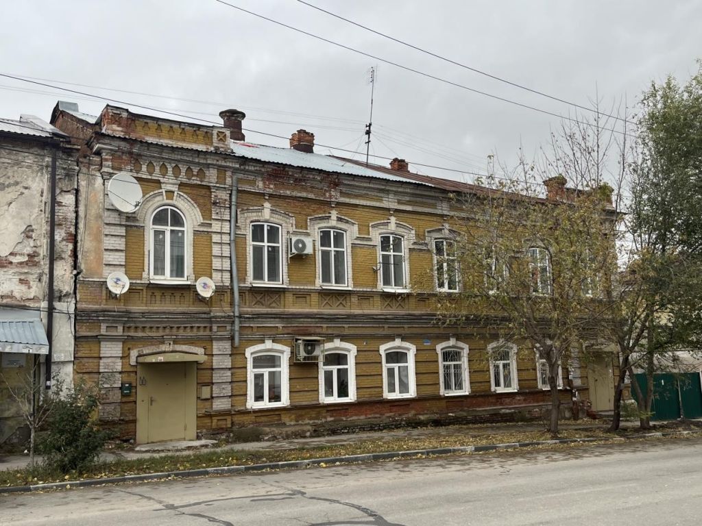 1Градостроительные характеристики:- местоположение в структуре городской застройки - по линии застройки четнойстороны ул. им. Челюскинцев, между ул. Соборной и ул. им. Некрасова Н.А.2Объёмно- пространственное композиционное построение здания - габариты здания (высотные и плановые габариты) сдеревянной пристройкой (форма и габариты) по северо- восточному и юго-восточному фасадам; - прямоугольная форма плана.3Композиционное и архитектурно-художественное оформление фасадов3.1- юго-западного (главного) фасада - симметричная относительно центральной оси композиция в восемь световых осей с двумя боковыми ризалитами;- ризалиты по первой, восьмой световым осям;- горизонтальное членение фасада междуэтажнымкарнизом и подоконными тягами в уровне первого- второго этажей.4Ризалиты – местоположение, форма, габариты, архитектурное оформление:4.1- боковые ризалиты юго-западного (главного) фасада -исторические форма и габариты;-симметричная относительно центральной оси композиция в одну световую ось;- боковые лопатки в уровне первого-второго этажей (форма и габариты);- декоративное оформление лопаток: рустованный ствол; прямоугольная ниша под подоконной тягой в уровне первого этажа; прямоугольная филенка под подоконной тягой в уровне второго этажа; - завершение ризалита аттиком;- форма и габариты аттика, ограниченного боковыми тумбами;- профилированное завершение аттика, раскрепованное по тумбам;- глухая имитация балюстрады из фигурных ниш, по основной части аттика;- декоративное оформление тумб: крестообразный узор в нише;- профилированный венчающий карниз,раскрепованный по лопаткам;- декоративное оформление фриза: композиция из шести шестиугольных ниш по основной плоскости фасада; сдвоенные кронштейны по осям лопаток; - оконный проем второго этажа (форма и габариты) с арочным завершением;- декоративное оформление оконного проема второго этажа: арочная перемычка; плоский наличник с фаской по внутреннему контуру; арочный сандрик, декорированныйзамковым камнем; подоконная тяга раскрепованная по лопаткам;- декоративное оформление основной плоскости фасада между подоконной тягой и междуэтажным карнизом: заглубление фасада по оси оконного проема,декорированное четырьмя фигурными нишами;квадратные филенки по бокам заглубления; - профилированныймеждуэтажный карниз, раскрепованный по лопаткам, декорированный поребриком по основной плоскости стены и прямоугольными нишами по осям лопаток;- входной проем (форма и габариты) с лучковымзавершением;- декоративное оформление входного проема: лучковая перемычка; лучковый сандрик с замковым камнем.5Характер отделки фасадов:5.1- первого-второго этажей основного объема и ризалитов юго-западного (главного) фасада - открытая кирпичная кладка.5.2- первого этажа основного объема и ризалитов юго-западного (главного) фасада - рустованная плоскость фасада.6Световые проемы – местоположение, форма, габариты и архитектурное оформление:6.1- первого этажа основного объема юго- западного (главного) фасада -оконный проем (форма и габариты) с лучковымзавершением;-плоский наличник с фаской по внутреннему контуру и«ушками», декорированный замковым камнем;-лучковая перемычка;-подоконная ниша прямоугольной формы.6.2- второго этажа основного объема юго- западного (главного) фасада -оконный проем (форма и габариты) 