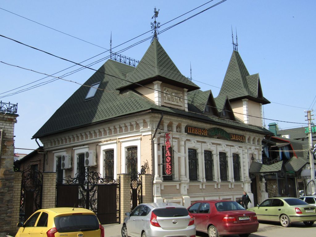1Градостроительные характеристики:1.1Местоположение в структуре городской застройки- по линии застройки ул. Коммунистической 2Архитектурные и конструктивные характеристики:2.1 Объемно-пространственная композиция- конфигурация в плане (прямоугольная);- количество этажей (один этаж с полуподвалом и мансардой);- высотные отметки по венчающим карнизам;- форма крыши (скатная). Схема генплана БТИ от 1976 г.Схема плана полуподвала Схема плана 1-го этажа2.2Композиция и архитектурно-художественное оформление северо-восточного фасадаСеверо-восточный (главный) фасад в шесть световых осей и двумя боковыми ризалитами небольшого выноса.Местоположение, форма, размер:- оконных проемов первого этажа с лучковым завершением, обрамленных профилированным наличником с замковым камнем;оконных проемов полуподвала с лучковым завершением и прямоугольным декоративным обрамлением;дверного проема прямоугольной конфигурации по 6-й световой оси;Исторические форма и габариты:профилированного цокольного карниза в виде валика;профилированного подоконного карниза;декоративной тяги, проходящей в простенках проемов первого этажа;профилированного надоконного карниза;профилированного венчающего карниза.Исторические форма и габариты:боковых ризалитов небольшого выноса;полуколонн с капителью, базой и уширением в уровне цоколя, фланкирующих угловые вертикали боковых ризалитов;рустовки угловых вертикалей ризалитов за полуколоннами;стилизованных триглифов с гуттами, расположенных под венчающим карнизом ризалитов, между которыми находятся декоративные окружности;декоративного обрамления над дверным проемом ризалита в виде наличника с замковым камнем. Северо-восточный фасад Оконные проемы первого этажа Оконные проемы полуподвала Дверной проем Цокольный карниз Подоконный карниз Тяга в простенках проемов Надоконный карниз Венчающий карниз Боковой ризалит2.3Композиция и архитектурно-художественное оформление юго-восточного фасадаЮго-восточный (боковой) фасад в четыре световые оси.Местоположение, форма, размер:оконных проемов первого этажа с лучковым завершением, обрамленных простым наличником с сандриком в виде полочки.Исторические форма и габариты:профилированного подоконного карниза;профилированного надоконного карниза;профилированного венчающего карниза с кронштейнами. Юго-восточный фасад2.4Виды отделки фасадной поверхностиКирпичная кладка в технике открытого кирпича