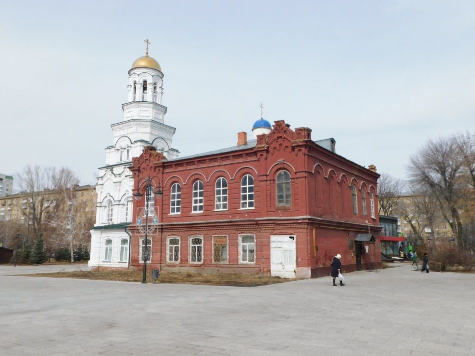Градостроительная значимость. Обособленное положение в юго-западной четверти парка им. Кирова С.М. Местоположение объектаг. Саратов, пл. им. Кирова, С.М., 1. Местоположение здания церковно-приходской школы Митрофаньевской церкви. Обособленное положение в юго-западной четверти парка им. Кирова С.М. в квартале, ограниченном ул. им. Чапаева В.И. с востока, ул. им. Василия Люкшина с юга, ул. площадь им. Кирова С.М. и Мирным переулком Объемно-пространственная композиция.г. Саратов, пл. им. Кирова, С.М., 1.Гармоничная по масштабу и пропорциям архитектурно-пространственная композиция, здания. Материал стен – глиняный обожженный кирпич. Объемно-пространственная композиция. г. Саратов, пл. им. Кирова, С.М., 1. Южный фасад.Симметричное построение южного фасада в 6 световых осей. Вертикальное членение подчеркнутое боковыми ризалитами, в одну световую ось, незначительно, на ½ кирп. выступающими из плоскости стены. Горизонтальное членение, выраженное горизонталями цоколя, завершающегося валиком, междуэтажного пояса и венчающего карниза. Горизонтальная рустика в оформлении стен 1-го этажа. Горизонтальная рустика по простенкам по 2-го этажа. Сандрики (полочка на кирпиче с подрезкой), объединенные короткими вставками то же профиля. Количество и форма световых проемов, имеющих лучковое завершение по 1-му этажу и полуциркульное по 2-му. Объемно-пространственная композиция.г. Саратов, пл. им. Кирова, С.М., 1. Северный фасад. Симметричное построение северного фасада в 6 световых осей. Горизонтальное членение выраженное горизонталями цоколя, завершающегося валиком, междуэтажного пояса и венчающего карниза. Горизонтальная рустика по простенкам по 2-го этажа. Плоская поверхность стен 1-го этажа. Сандрики (полочка на кирпиче с подрезкой), объединенные короткими вставками то же профиля. Количество и форма световых проемов, имеющих лучковое завершение по 1-му этажу и полуциркульное по 2-му. Ложные оконные проемы по пятой световой оси (от восточного угла здания). Объемно-пространственная композиция. г. Саратов, пл. им. Кирова, С.М., 1. Прямоугольная форма и размеры здания в плане. Кирпичные стены внешнего периметра. Архитектурно-художественная значимость. г. Саратов, пл. им. Кирова, С.М., 1. Южный фасад.Декоративной оформление угловых ризалитов южного фасада в уровне 2-го этажа. Лопатки, фиксирующие углы ризалитов.Полукруглыми колонки стилизованного дорического ордера, фланкирующие оконные проемы. Выраженный замковый камень, фиксирующий сандрик оконного проема. Треугольный щипец в завершении ризалита фланкированный боковыми парапетными столбиками. Стилизованный картуш, помещенный в вершину щипца. Аркатура в тимпане щипца, расположенная по ломаной линии, с уклоном, примерно в половину уклона скатов щипца. Те же арочки выведенные на лопатки, фиксирующие углы ризалитов.Архитектурно-художественная значимость.г. Саратов, пл. им. Кирова, С.М., 1.Южный фасад.Северный фасад.Венчающий карниз северного и южного фасадов – двухуровневая полочка, разделенная полуваликом.Фриз отделенный узким пояском (полочка на кирпиче с подрезкой). Стилизованные модильоны с двухступенчатыми прямоугольными нишами между ними, задающие ритмическое членение фриза по горизонтали.Архитектурно-художественная значимость.г. Саратов, пл. им. Кирова, С.М., 1.Южный фасад.Северный фасад. Междуэтажный пояс се