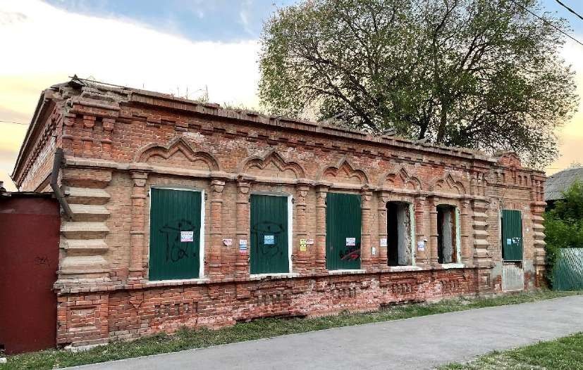 1Градостроительные характеристики:- местоположение в структуре городской застройки - по линии застройки нечетной стороны ул. Пушкина, вквартале между ул. Революционной и ул. Профсоюзной2Объёмно - пространственное композиционное построение здания -габариты здания (высотные и плановые габариты);-сложная, близкая к Г- образной форма плана.3Композиционное и архитектурно-художественное оформление фасадов3.1- северо-западного(главного) фасада - двухчастная композиция фасада из симметричного основного объема в пять световых осей и боковогопристроя в одну световую ось.4Пристрой – местоположение, форма, габариты, архитектурное оформление:4.1- северо-западного(главного) фасада -исторические форма и габариты;-прямоугольная форма входного проема с лучковым завершением и лучковой перемычкой; - боковая рустованная пилястра, пьедестал пилястры, декорированный нишей счетырёхгранным камнем, капитель пилястры,декорированная тремя полуколоннами из формовочного кирпича с кубоватыми капителями;-завершение фигурныматтиком, декорированным формовочным кирпичом;-профилированный венчающий карниз, декорированныйстилизованной аркатурой.5Характер отделки фасадов:5.1- основного объем и пристоя северо-западного (главного) фасада - открытая кирпичная кладка. 6Световые проемы – местоположение, форма, габариты и архитектурное оформление:6.1- основного объема северо-западного (главного) фасада -прямоугольная форма оконного проема с лучковым завершением;-лучковая перемычка;-полуколонны,декорированные формовочным кирпичом, обрамляющие оконный проем;-кубоватые капители полуколонн;-профилированный фигурный наличник со стрельчатымзавершением по верхнему контуру оконного проема;-композиция из пяти узких подоконных вертикальных ниш;-рисунок расстекловки оконного проема.7Элементы вертикального членения фасада - архитектурное оформление, местоположение, форма и габариты:7.1- пилястры боковые основного объемасеверо-западного (главного) фасада -рустованный ствол пилястры;-капитель пилястры, декорированная тремя полуколоннами изформовочного кирпича с кубоватыми капителями;-пьедестал пилястры,декорированный нишей с четырёхгранным камнем. 8Элементы горизонтального членения - архитектурное оформление, форма и габариты:8.1- подоконный карниз основного объемасеверо-западного (главного) фасада - узкий профилированный подоконный карниз, объединяющая оконныепроемы по нижнему контуру, раскрепованный по пилястрам и полуколоннам.8.2- второстепенная тяга над оконными проемами основного объема северо-западного (главного) фасада - узкая профилированная тяга, раскрепованная по пилястрам и полуколоннам.8.3- венчающий карниз основного объемасеверо-западного (главного) фасада - профилированный венчающий карниз,декорированный дентикулами.