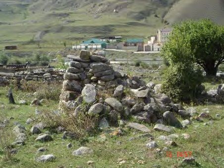 1. Объемно-пространственное решение: исторические габариты, конфигурация и местоположение круглого в плане строения, d-3.26 высота 2,1 м.2. Конструктивная система склепа: фундаменты; исторические наружные стены - местоположение, вид материала (камень); перекрытие - сводчатое каменное.3. Объемно-планировочноерешение:историческое объемно-планировочное решение склепа в габаритах наружных стен.4. Архитектурно-художественное решение фасадов материал и вид отделки фасадов - каменная, сложена из разноразмерных камней на известковом растворе кладка.