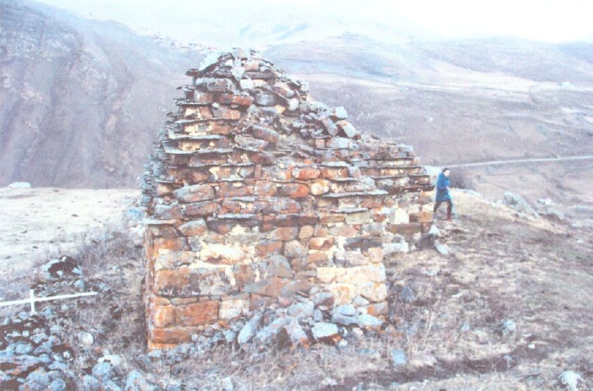 1. Градостроительная характеристика склепа, участвующего в формировании застройки некрополя с. Хонсар.2. Объемно-пространственная композиция: четырехугольное в плане сооружение длиной 3,35 м, шириной 3,30 м, высотой около 5 м.3. Материал капитальных стен и техника кладки: сложен из разноразмерных обработанных камней на известковом растворе.4. Размеры, форма и расположение окон и дверей: четырехугольный лаз устроен в северо-восточной фасадной стене на высоте 0,45 м от земли: ширина 0,56 м, высота 0,40 м.5. Композиционное решение и архитектурно-художественное оформление: наземный склеп, характерный для средневековых погребальных памятников Северного Кавказа.6. Виды и материал обработки фасадной поверхности.7. Расположенные под дерновым слоем пласты грунтов, образовавшиеся в процессе жизнедеятельности человека и содержащие в себе недвижимые остатки и предметы материальной культуры: а) полностью или частично скрытые в земле остатки и фрагменты хозяйственных, производственных, ритуальных и иных сооружений; б) полностью или частично скрытые в земле либо находящиеся на ее поверхности целые либо фрагментированные предметы, изготовленные из глины, камня, кости, стекла, металлов и иных материалов, в том числе остеологического материала.Сведения, составляющие описание предмета охраны, могут быть уточнены и дополнены в результате последующих историко-архивных, археологических и научных изысканий.
