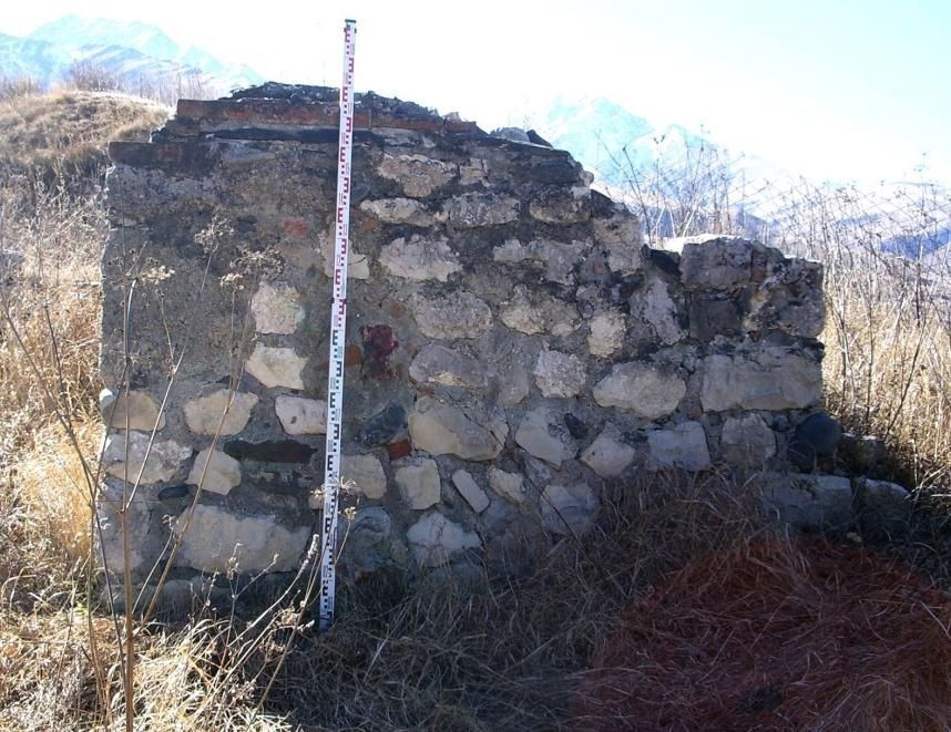 1. Объемно-пространственное решение: исторические габариты, местоположение и конфигурация в плане наземного склепа 2,90 х 3,25 м, высота 1,80 м (разрушен)2. Конструктивная система: фундаменты; исторические наружные стены-местоположение, вид материала (камень).3. Объемно-планировочное решение: историческое объемно-планировочное решение наземного склепа в габаритах наружных стен4. Архитектурно-художественное решение: материал и вид отделки фасадов-каменная, сложена из разно-размерных камней на известковом растворе кладка