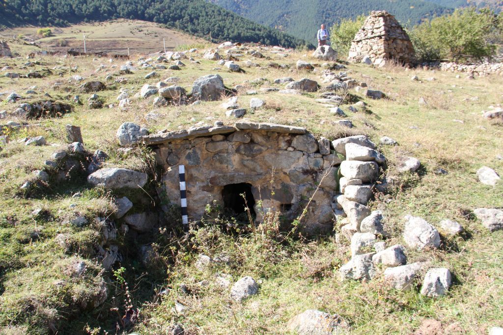 Предмет охраныобъекта культурного наследия регионального значения «Склеп двухкамерный», входящего в состав объекта культурного наследия регионального значения «Комплекс сооружений, средние вв.: сторожевая башня, укрепленная усадьба Тугановых, сторожевая башня Тугановых, склеп Цакоевых, склеп полуподземный, склеп наземный, склеп башенный, склеп, склепдвухкамерный»Предметом охраны объекта культурного наследия регионального значения «Склеп двухкамерный», входящего в состав объекта культурного наследия регионального значения «Комплекс сооружений, средние вв.: сторожевая башня, укрепленная усадьба Тугановых, сторожевая башня Тугановых, склеп Цакоевых, склеп полуподземный, склеп наземный, склеп башенный, склеп, склеп двухкамерный», расположенного по адресу: Республика Северная Осетия-Алания, Ирафский район, с. Вакац, на склоне, являются:основные габариты (в том числе толщина стен); композиционная значимость склепа в структуре селения; участок и его границы; рельеф участка;типологические характеристики строения, включая объемное решение и фасад;конструкции склепа. Объемно-планировочное решение, высота и конфигурация;казы, их размеры и форма; конструкции и элементы заполнения лаза;археологические недвижимые и движимые объекты, содержащиеся в склепе, и под ним (погребальные и поминальные конструкции, антропологические и остеологические материалы, археологические предметы, следы погребальных и поминальных ритуалов);характер кладки - бутовая, с хаотичной перевязкой швов; характер и состав обмазки стен;материал, из которого построен склеп - гранитные, известняковые блоки и сланцевые плиты (цветовая гамма - светло-серый, светло- коричневый).