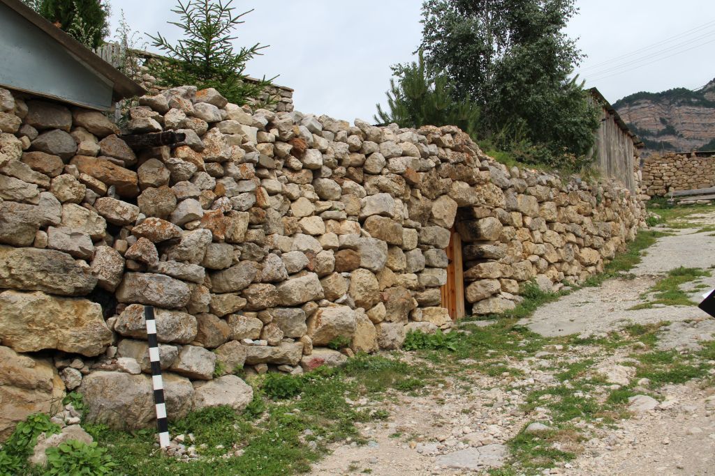 1. Место расположения святилища. Святилище расположено в центральной части селения, историческом ядре. Координаты в системе WGS-84: N 43° 0'39\"; E 43°47'56\";2. Типологические характеристики святилища. Святилище устроено в жилом доме. К настоящему времени 1-й уровень засыпан, 2-й уровень сложен заново в нач. 1990-х гг. Дом был двухэтажный, со двором, оформленным каменной оградой (фрагмент сохранился), четырехугольный в плане, с входом на 1-м этаже. В северной стене первого этажа при строительстве в каменную кладку вписан большой скальный обломок (или останец). Размеры дома в плане 11 х 7 (м);3. Подлинные каменные конструкции первого этажа (засыпан);4. Большой скальный обломок (останец), засыпанный в уровне первого этажа дома с северной стороны;5. Медный котел;6. Южный фрагмент каменной ограды, ограничивающий двор вдоль улицы. Её габариты, толщина;7. Материал, из которого сложен южный фрагмент каменной ограды: подогнанные известняковые глыбы и плиты разного размера;8. Входной проем в южном фрагменте ограды, его расположение, форма, оформление, размеры;9. Характер кладки южного фрагмента каменной ограды: сухая, бутовая, с хаотичной перевязкой швов;10.Расположенные под поверхностью участка пласты грунтов, образовавшиеся в процессе жизнедеятельности человека и содержащие в себе недвижимые остатки и предметы материальной культуры: а) полностью или частично скрытые в земле остатки и фрагменты хозяйственных, производственных, ритуальных и иных сооружений; б) полностью или частично скрытые в земле либо находящиеся на ее поверхности целые, либо фрагментированные предметы, изготовленные из глины, камня, кости, стекла, металлов и иных материалов, в том числе остеологического материала.
