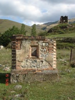 1. Объемно-пространственное решение: исторические габариты, конфигурация и местоположение прямоугольного в плане строения, 2,58х1,9, высотой 2,1 м.2. Конструктивная система склепа: фундамент; исторические наружные стены из кирпича и камня; цоколь из камня.3. Объемно-планировочное решение: историческое объемно-планировочное решение склепа в габаритах наружных стен.4. Архитектурно-художественное решение фасадов: материал и вид отделки фасадов: стены - кладка из кирпича и камня на известковом растворе; цоколь каменная кладка, оштукатуренная известковым раствором; прямоугольный проем в стене западного фасада; ниши на северном и южном фасадах; мемориальная доска на восточном фасаде.