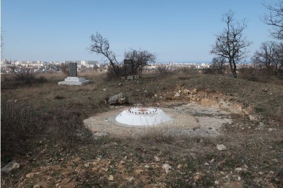 - Местоположение, габариты и конструкции сохранившегося орудийного дворика береговой батареи, расположенного к северу от Максимовой дачи;- Местоположение стелы, расположенной к западу от орудийного дворика;- Мемориальный памятный знак с надписью: «Батарея № 113 // действовала XII – 1941 – VI – 1942 // крейсера «Червона Украина» // комбат л-т Денисенко Г.И. // с юго-западной стороны Максимовой дачи – // батарея № 116 комбат л-т Меньшиков П.И. // 2х башенные 130 мм орудия сист. Виккерса», его габариты и материал;- Мемориальная надпись на лицевой стороне стелы, выполненная в технике гравировки: Здесь в период // героической обороны // Севастополя // 1941-1942 г.г. // отважно сражались // за Советскую Родину // моряки- // артиллеристы // 703 /114/ батареи // береговой обороны //Черноморского // флота // Вечная Слава // Героям!».Предмет охраны может быть уточнен в процессе проведения комплексных научных исследований и производства реставрационных работ.