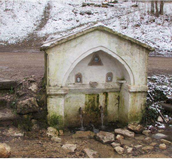 - Местоположение сооружения XIX века, установленного на склоне, тыльной стороной к полотну местной дороги (ул. Ключевая);- Объемно-пространственная историческая композиция сооружения XIX века, включающая в себя прямоугольную в плане стелу со стрельчатой нишей и двухскатным покрытием, трубы (3) для подачи воды в задней стенке ниши, прямоугольный резервуар у основания стелы: конфигурация и размеры;- Художественное оформление лицевой поверхности стелы: форма ниши со стрельчатым завершением с утопленным архивольтом, опирающимся на горизонтальную профилированную тягу, отделяющую завершение ниши от прямоугольной нижней части;- Материал: крымбальский камень;- Характер обработки фасадных поверхностей (уточняется в процессе комплексных научных исследований и осуществления производства реставрационных работ);- Колористическое решение (уточняется в процессе комплексных научных исследований и осуществления производства реставрационных работ).Предмет охраны может быть уточнен в процессе проведения комплексных научных исследований и производства реставрационных работ.