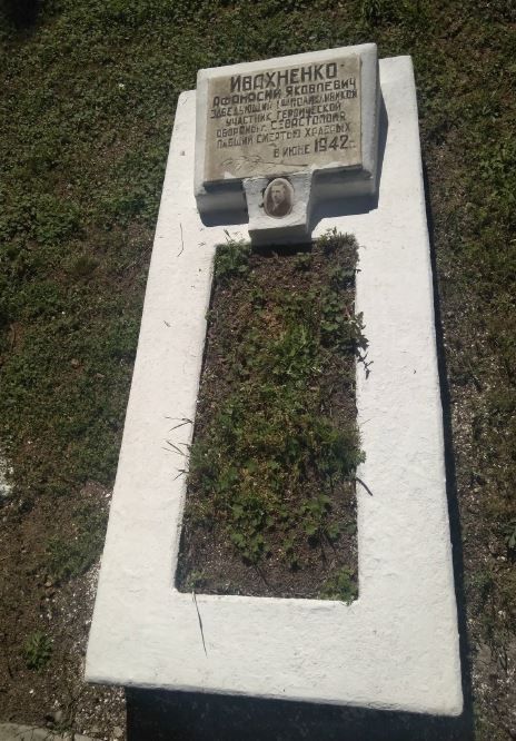 Надгробие над захоронением заведующего 1-й поликлиникой А.Я. Ивахненко (1896 – июнь 1942)