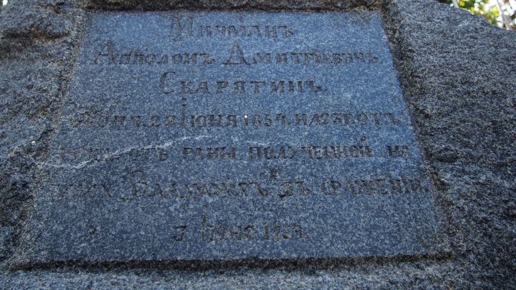 Могила участника Крымской войны 1853 – 1856 гг. мичмана А.Д. Скарятина