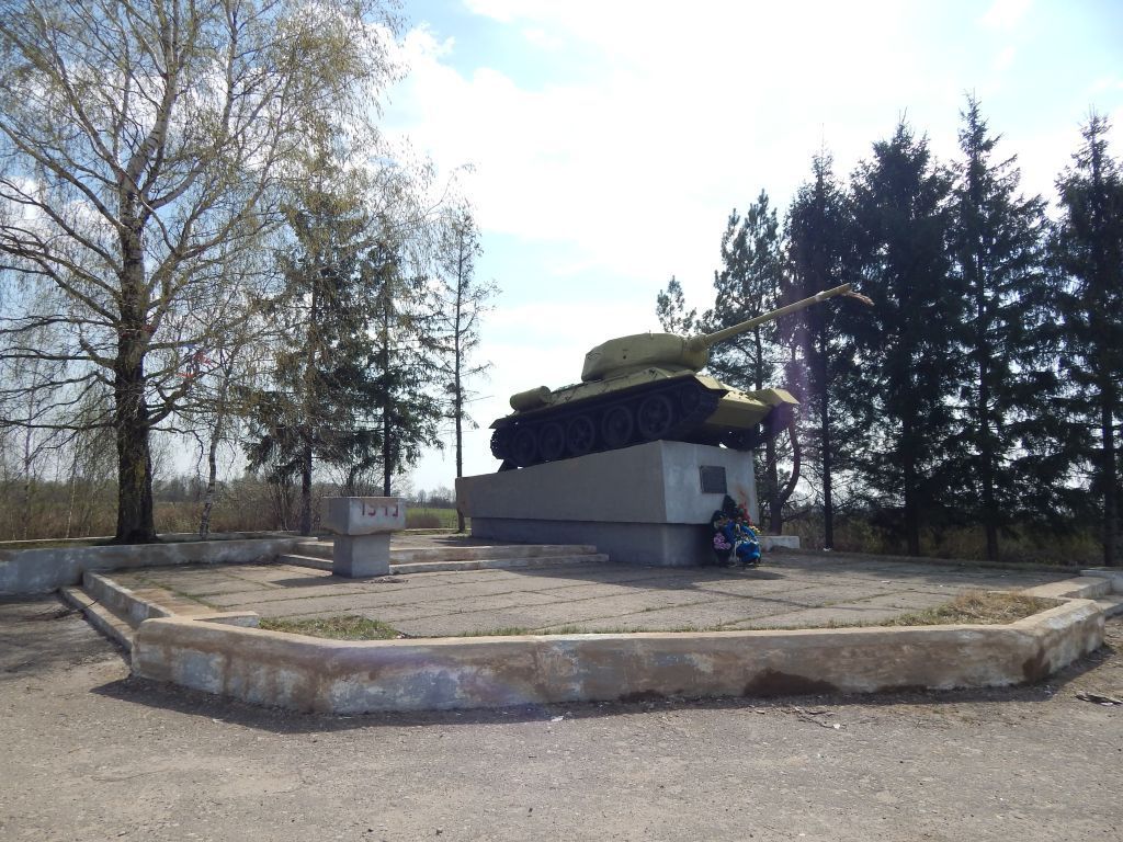 Танк "Т-34", установлен в ознаменование патриотического подвига трудящихся Монастырщинского района по оказанию помощи фронту в годы Великой Отечественной войны, мужества и героизма советских танкистов в боях с фашизмом