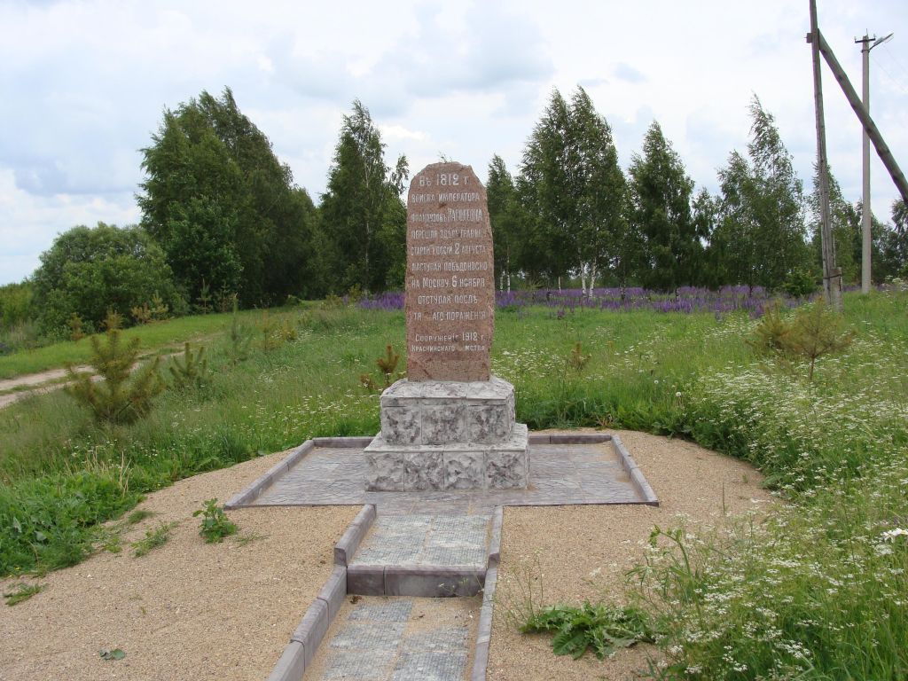 Памятный камень, на котором сделана (вырублена) надпись о том, что здесь 2 августа 1812 г. войска Наполеона перешли русскую границу, наступая на Москву, 6 ноября отступали после тяжелого поражения